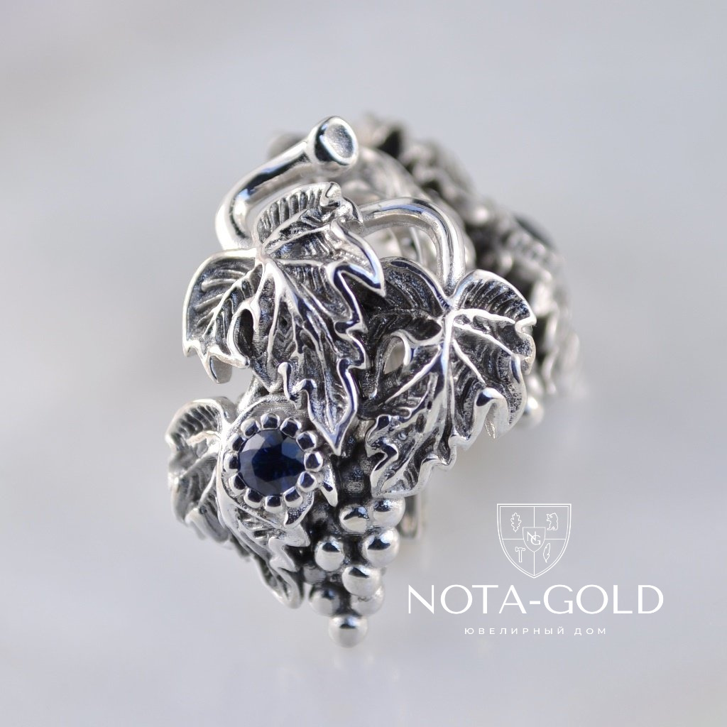 Золотые женские серьги на заказ Виноградная лоза с сапфиром (Вес: 20 гр.)