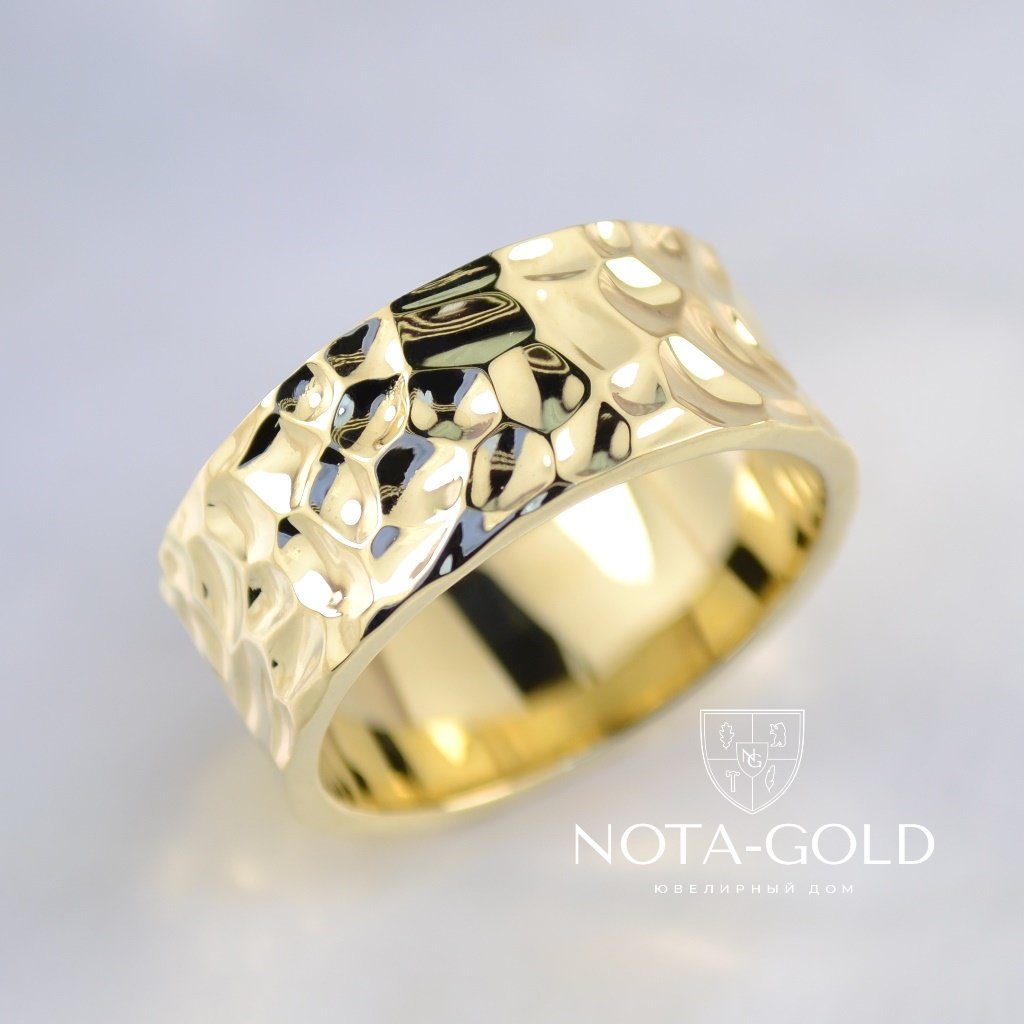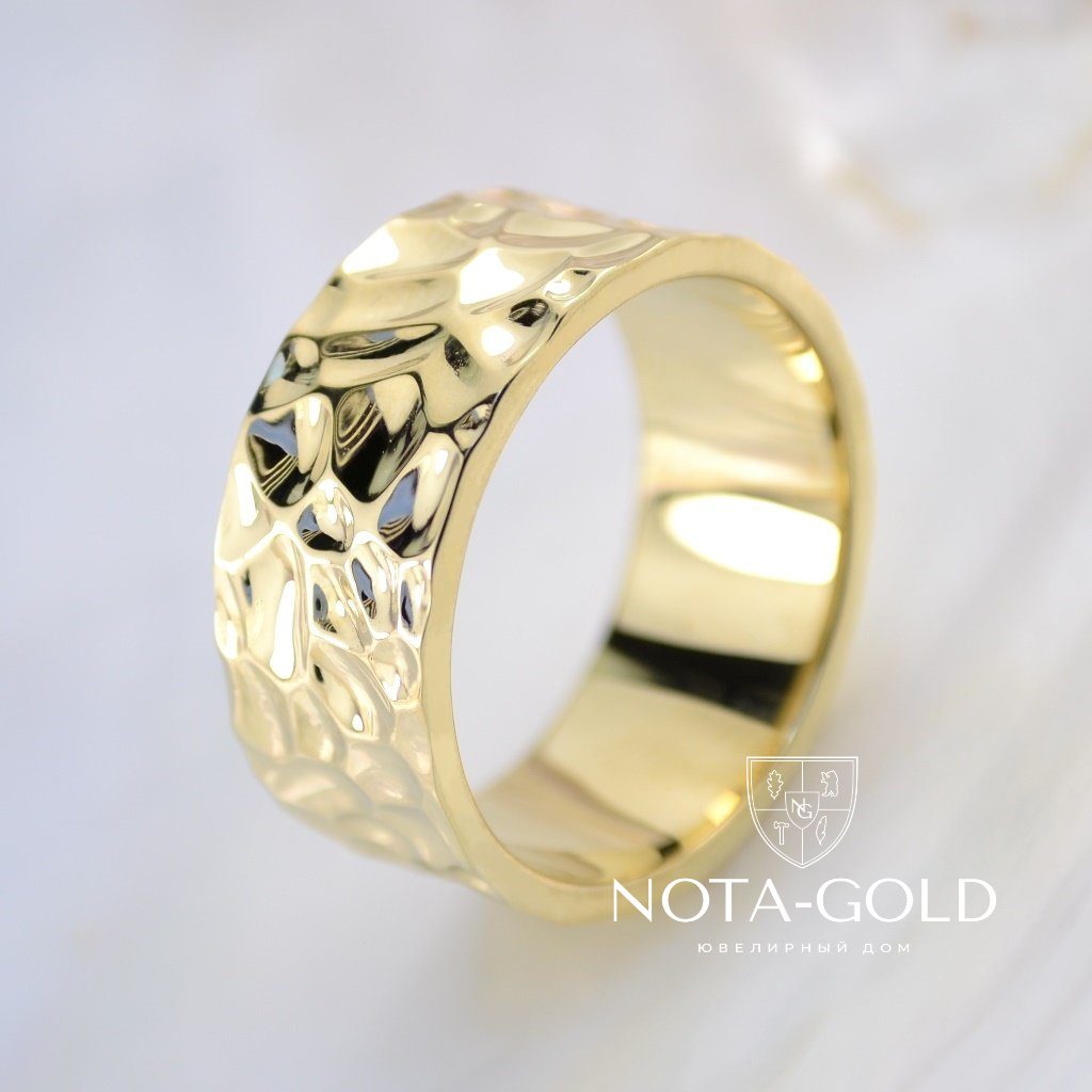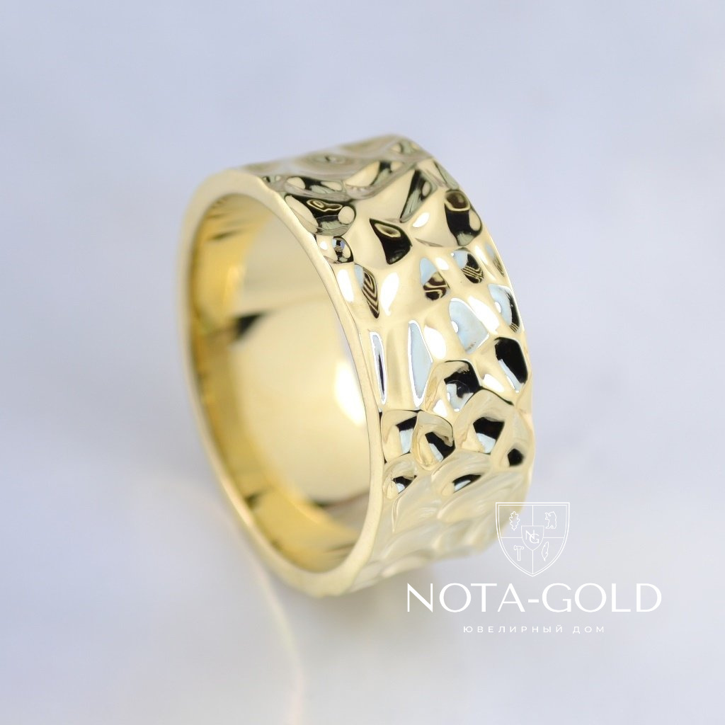 Текстурное широкое золотое кольцо на заказ из жёлтого золота (Вес: 12,5 гр.)