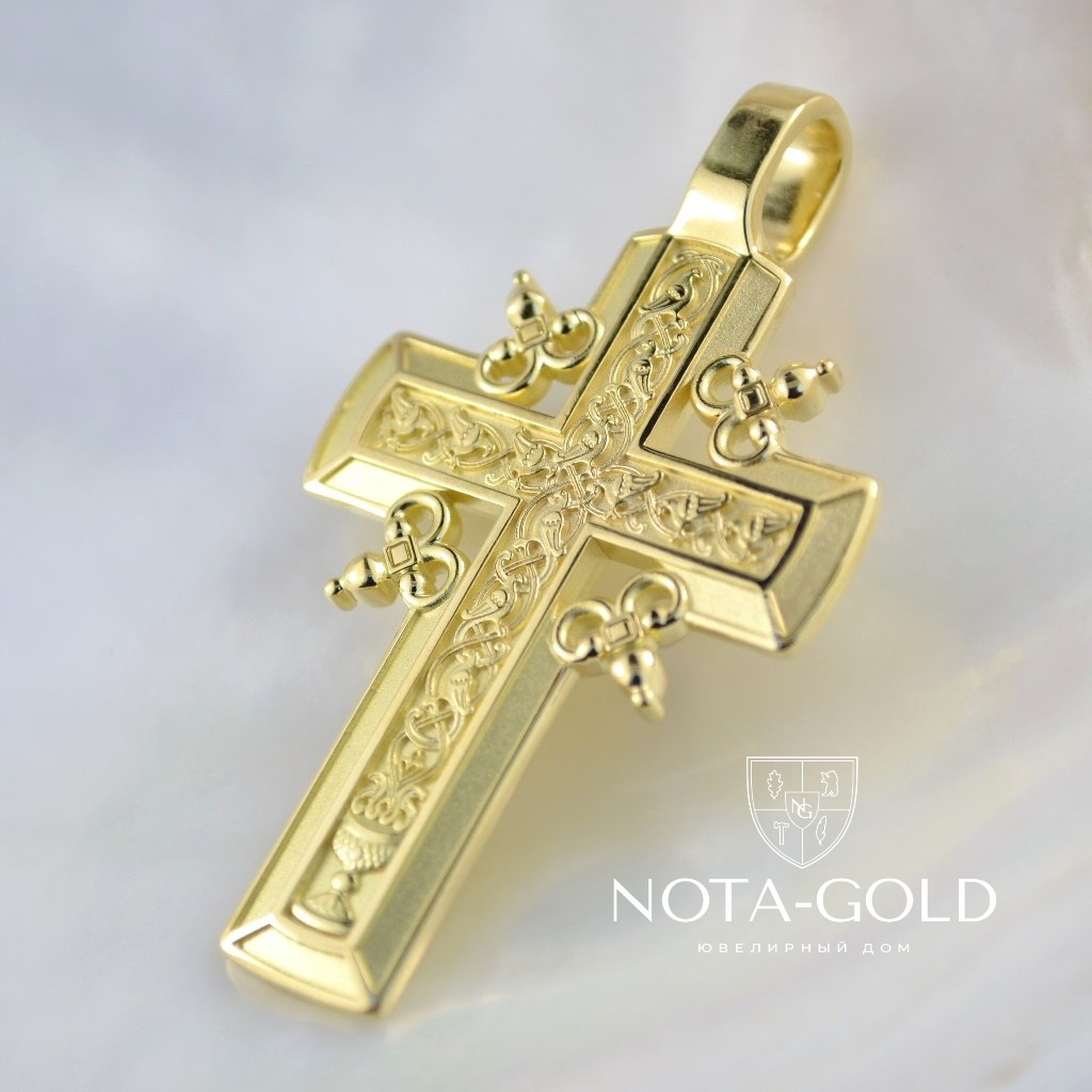 Нательный золотой Голгофский крест из жёлтого золота на заказ (Вес 22 гр.)