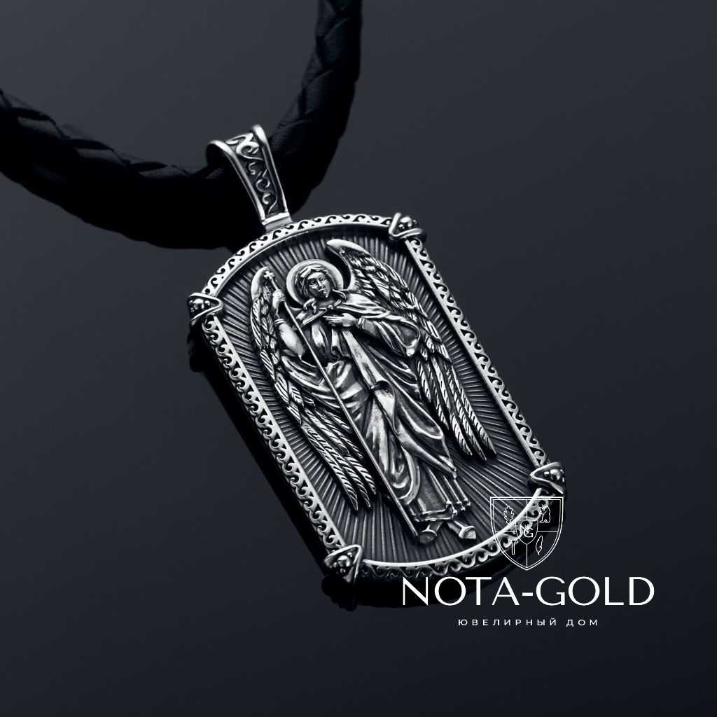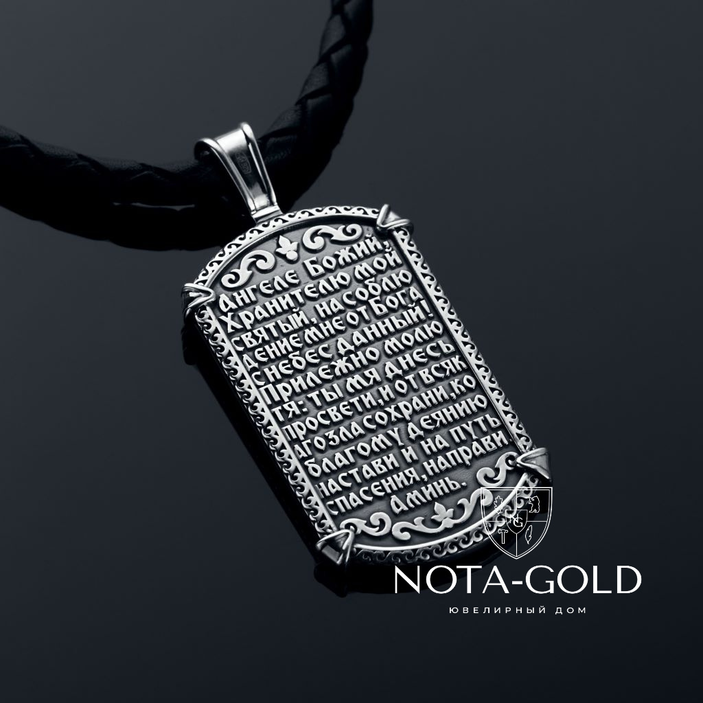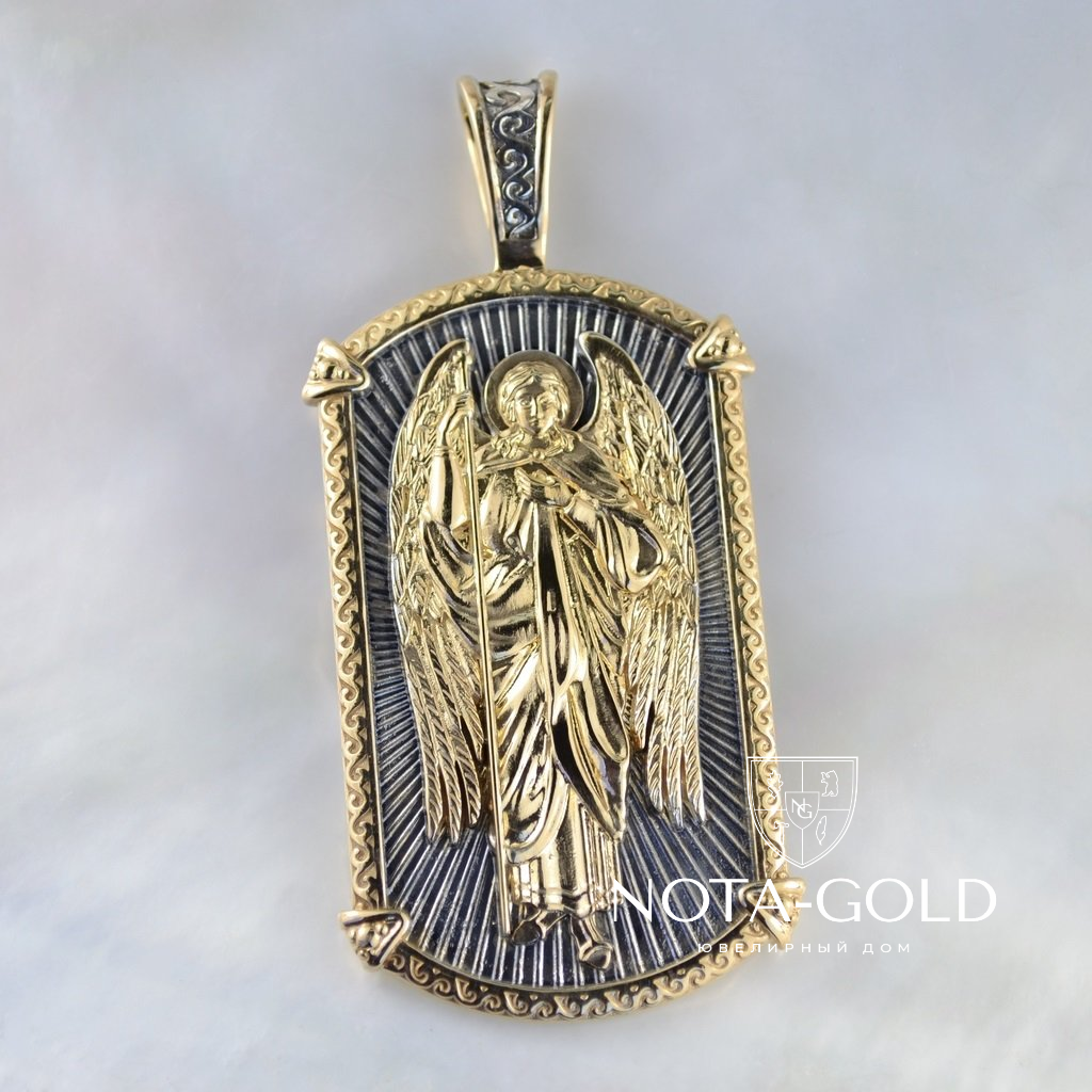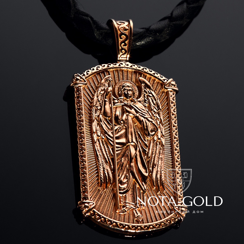Нательная золотая икона-жетон с образом Ангела Хранителя и молитвой на обратной стороне (Вес: 30 гр.)