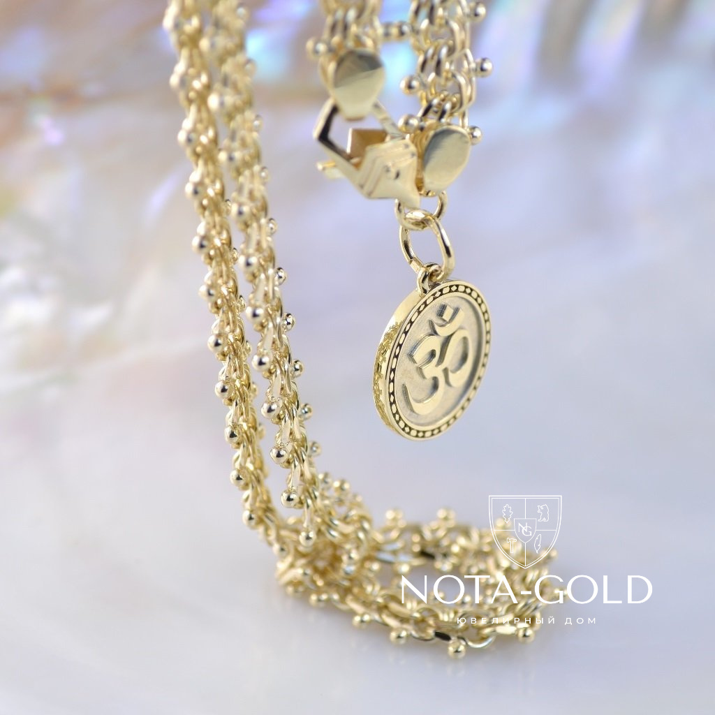 Золотая женская цепочка плетение Гламур с подвеской, символом Ом и чернением (Вес 29 гр.)