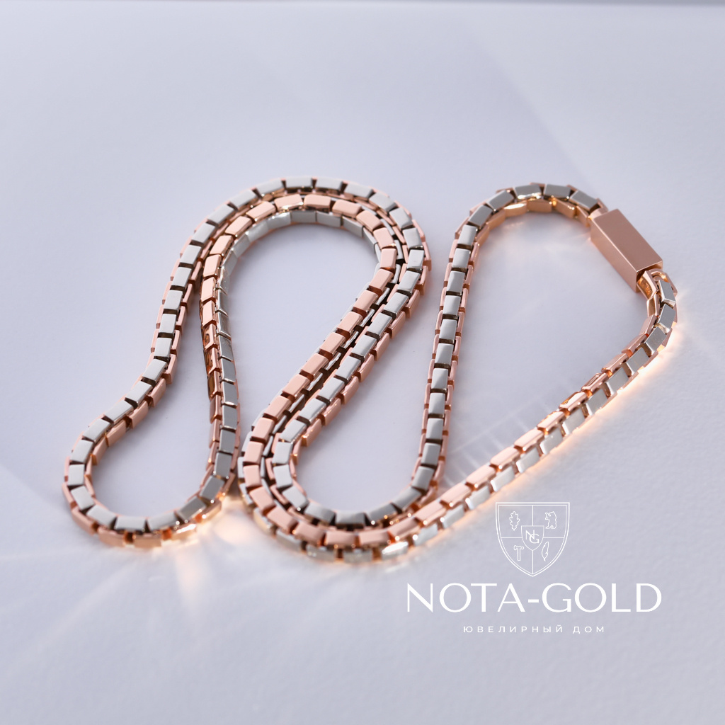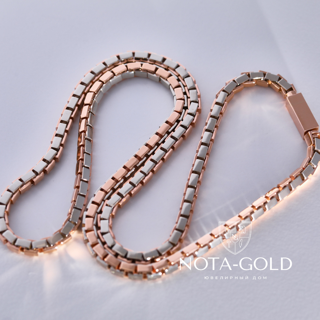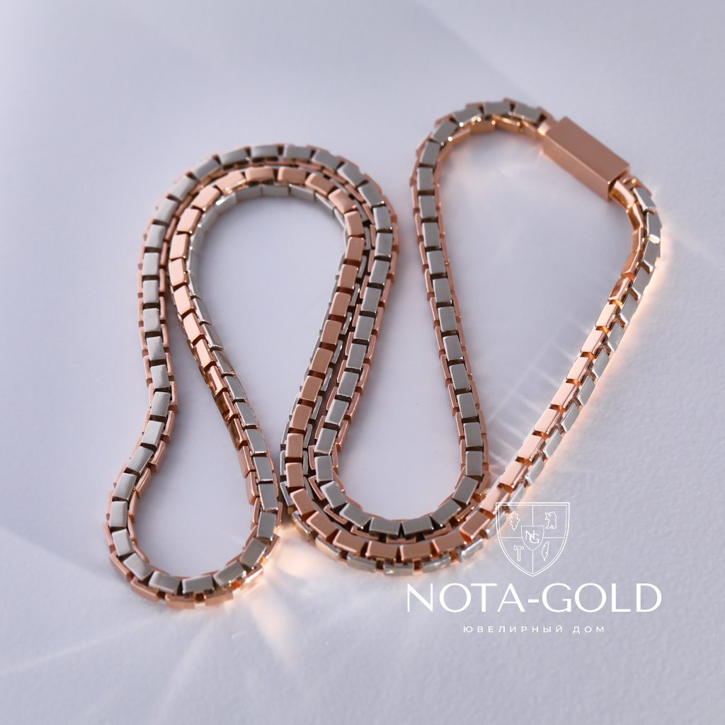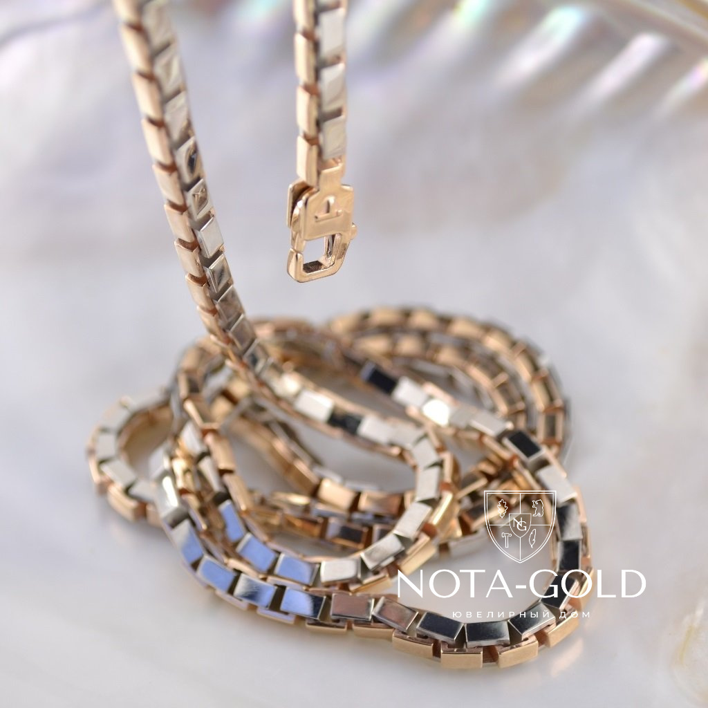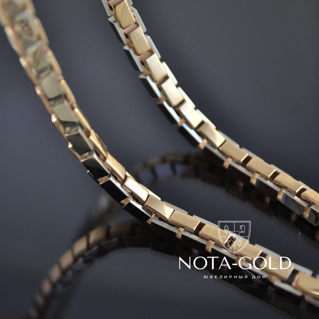 Золотая цепочка из двух видов золота плетение Рептилия (Вес 79 гр.)