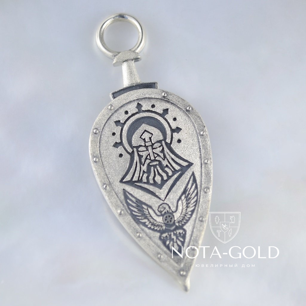 Серебряная матовая подвеска с чернением и изображением по эскизу Клиента (Вес: 14,5 гр.)