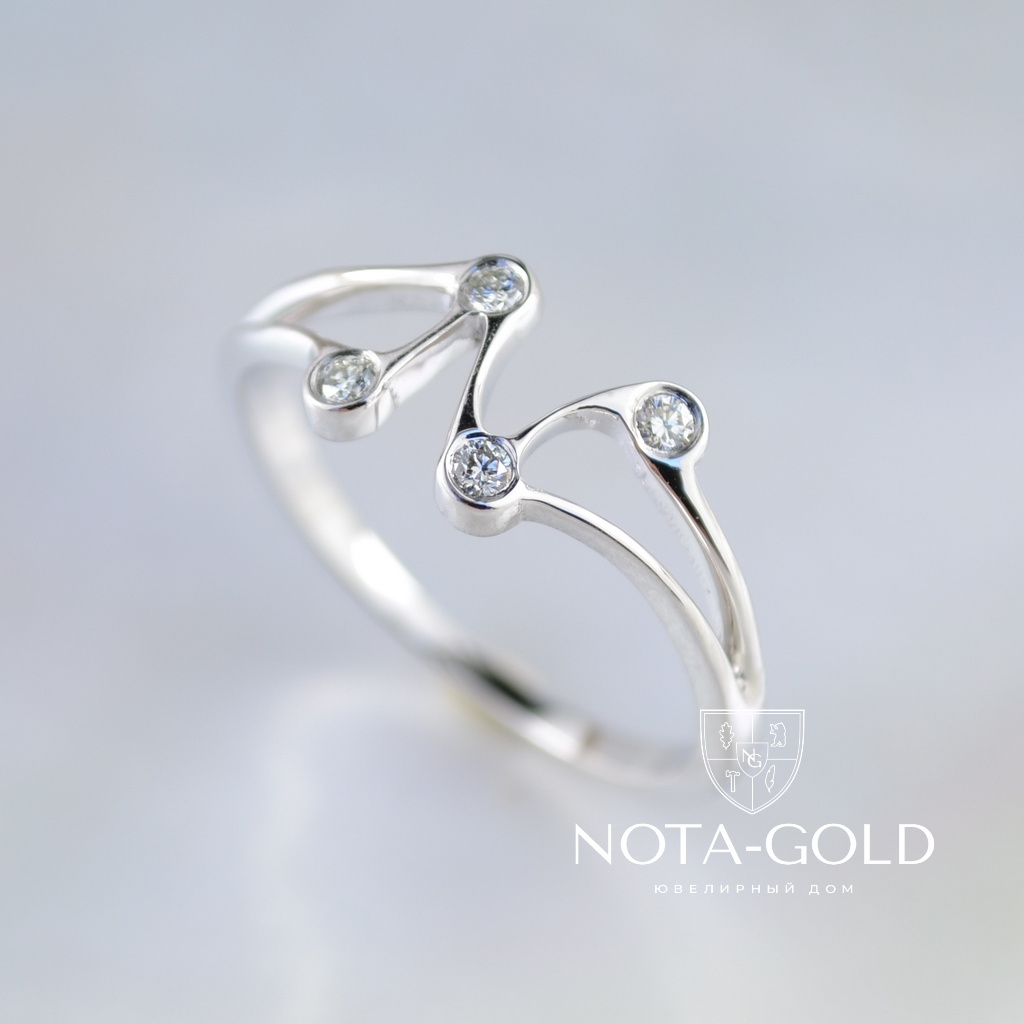 Золотое женское кольцо из белого золота с буквой и бриллиантами (Вес: 2 гр.)