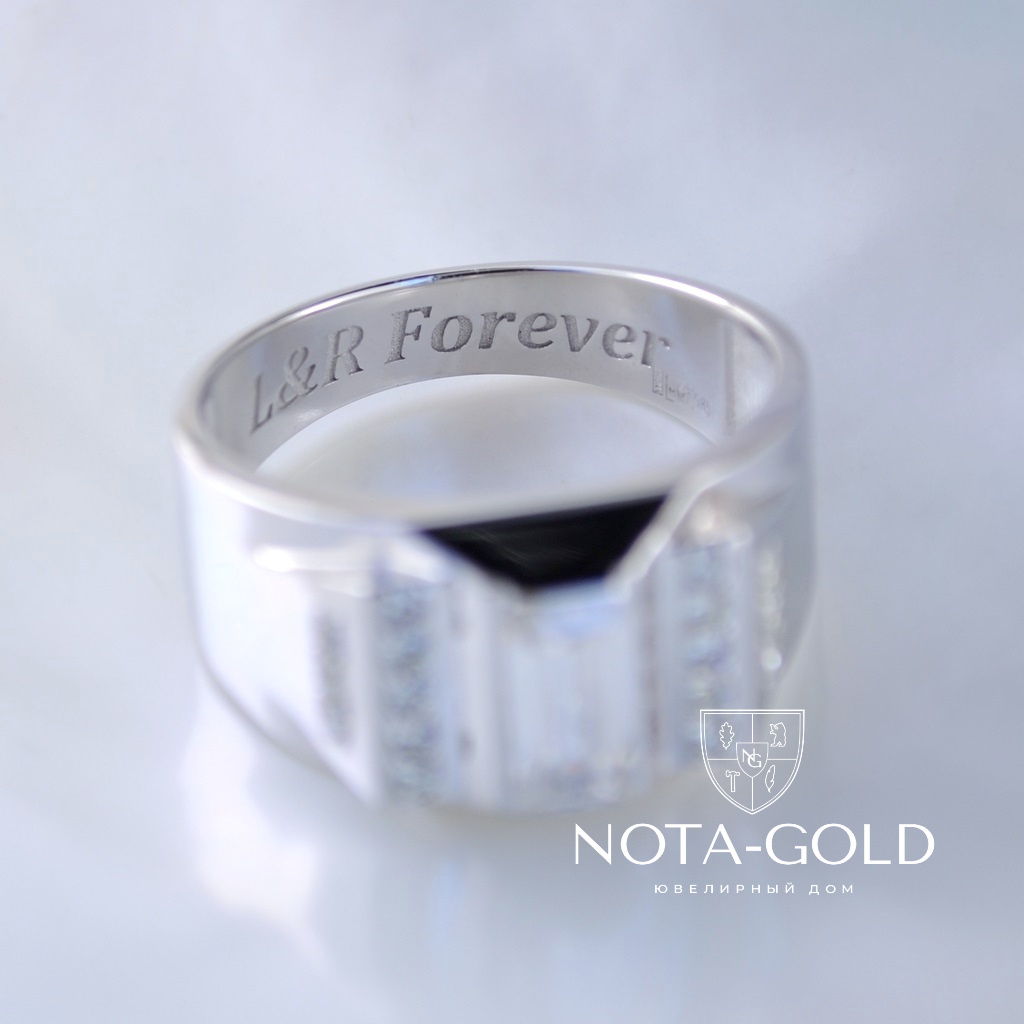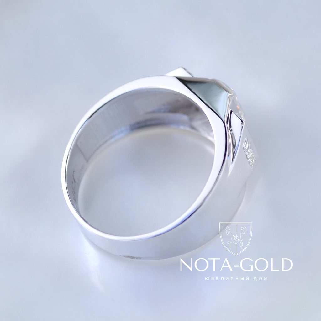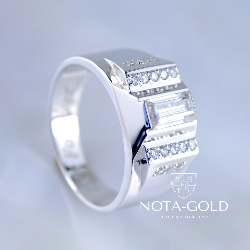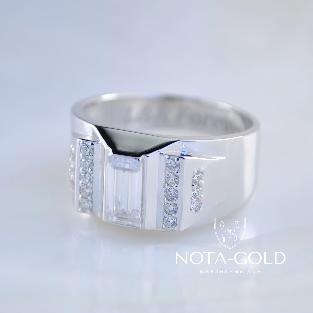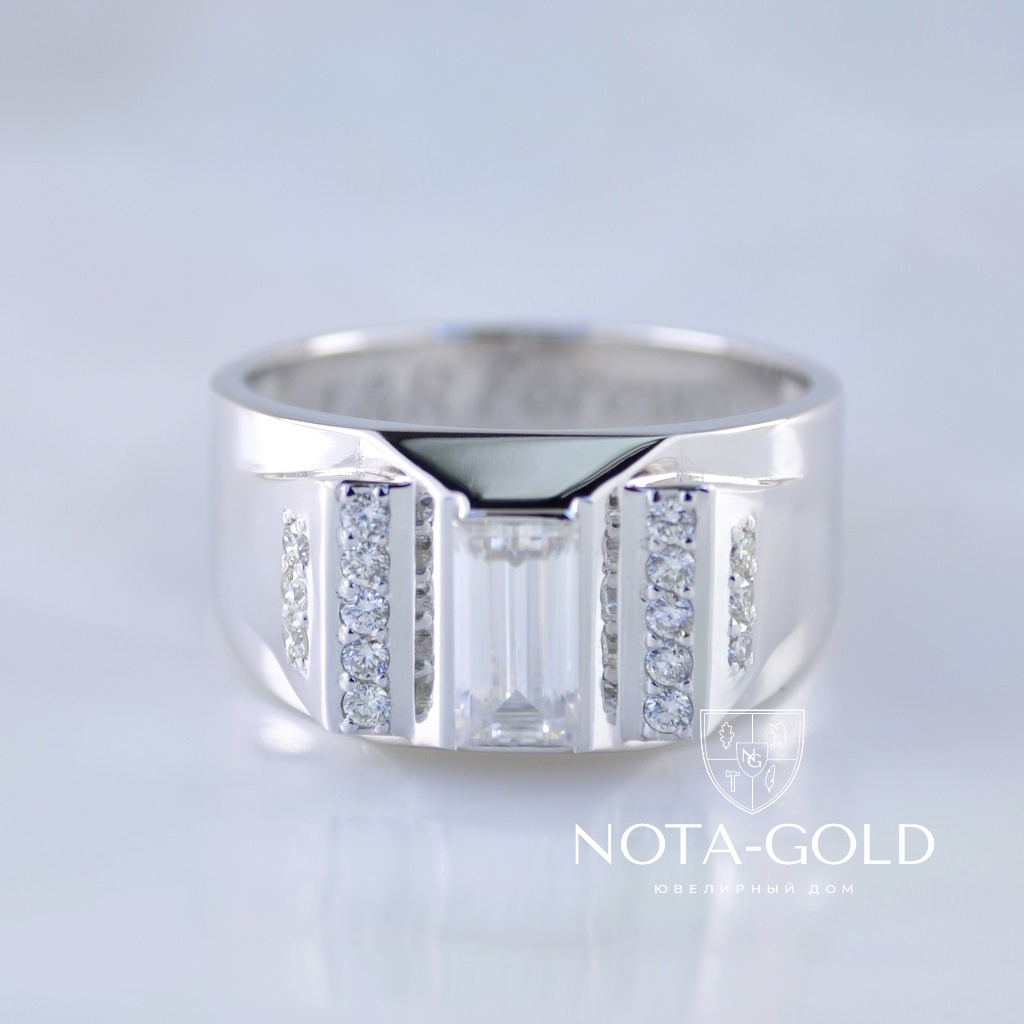 Мужское золотое кольцо с муассанитом, бриллиантами и гравировкой (Вес: 7 гр.)