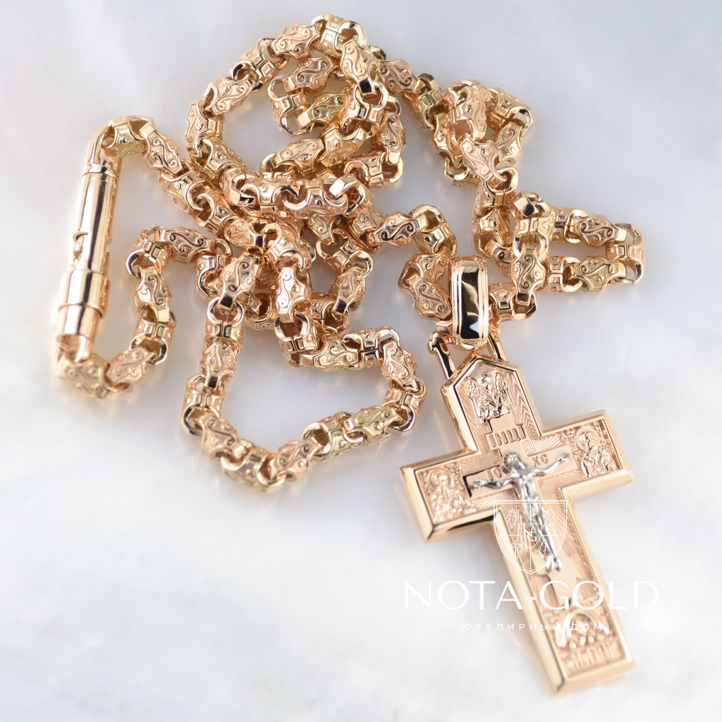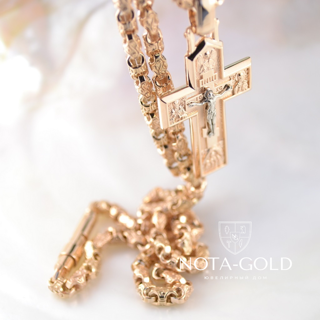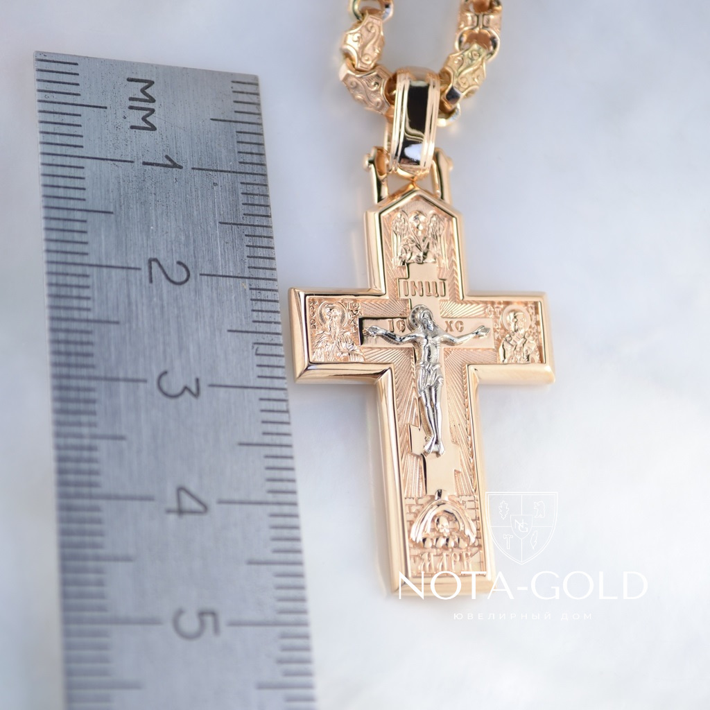 Золотой православный крест с распятием и ликами святых на золотой цепочке Краб Малый (Вес: 41 гр.)