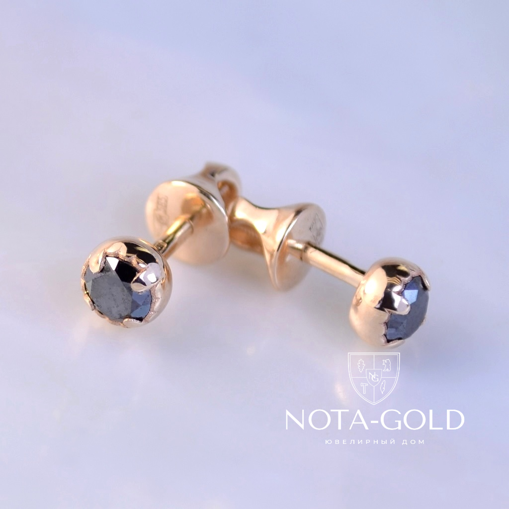 Женские золотые серьги-пусеты из красного золота с крупными бриллиантами (Вес: 1,7 гр.)