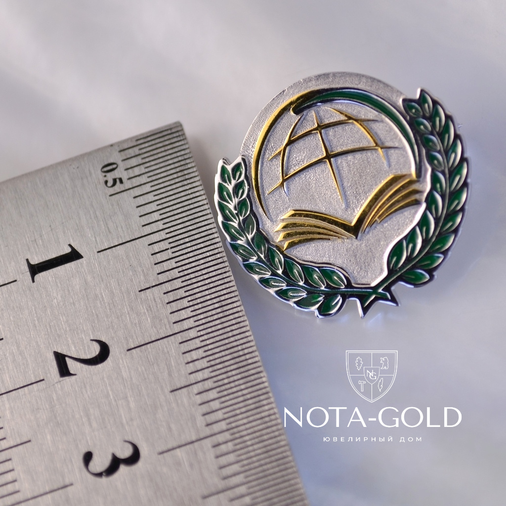 Эксклюзивная золотая брошь с логотипом компании и эмалью (Вес: 4,5 гр.)