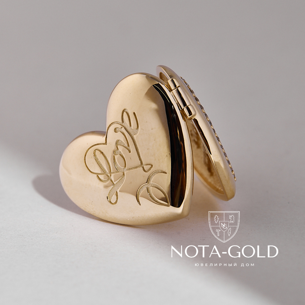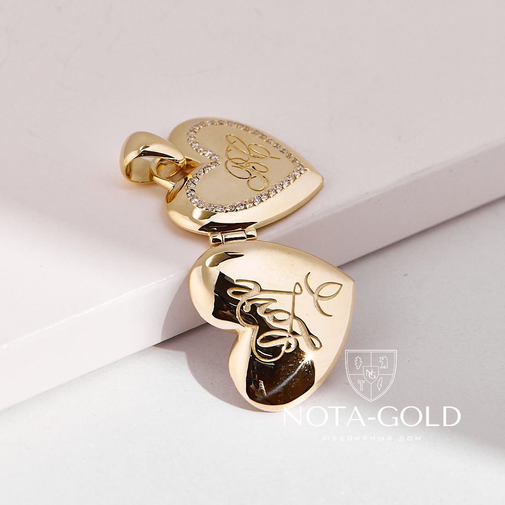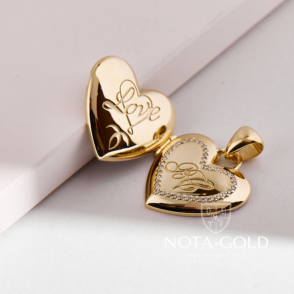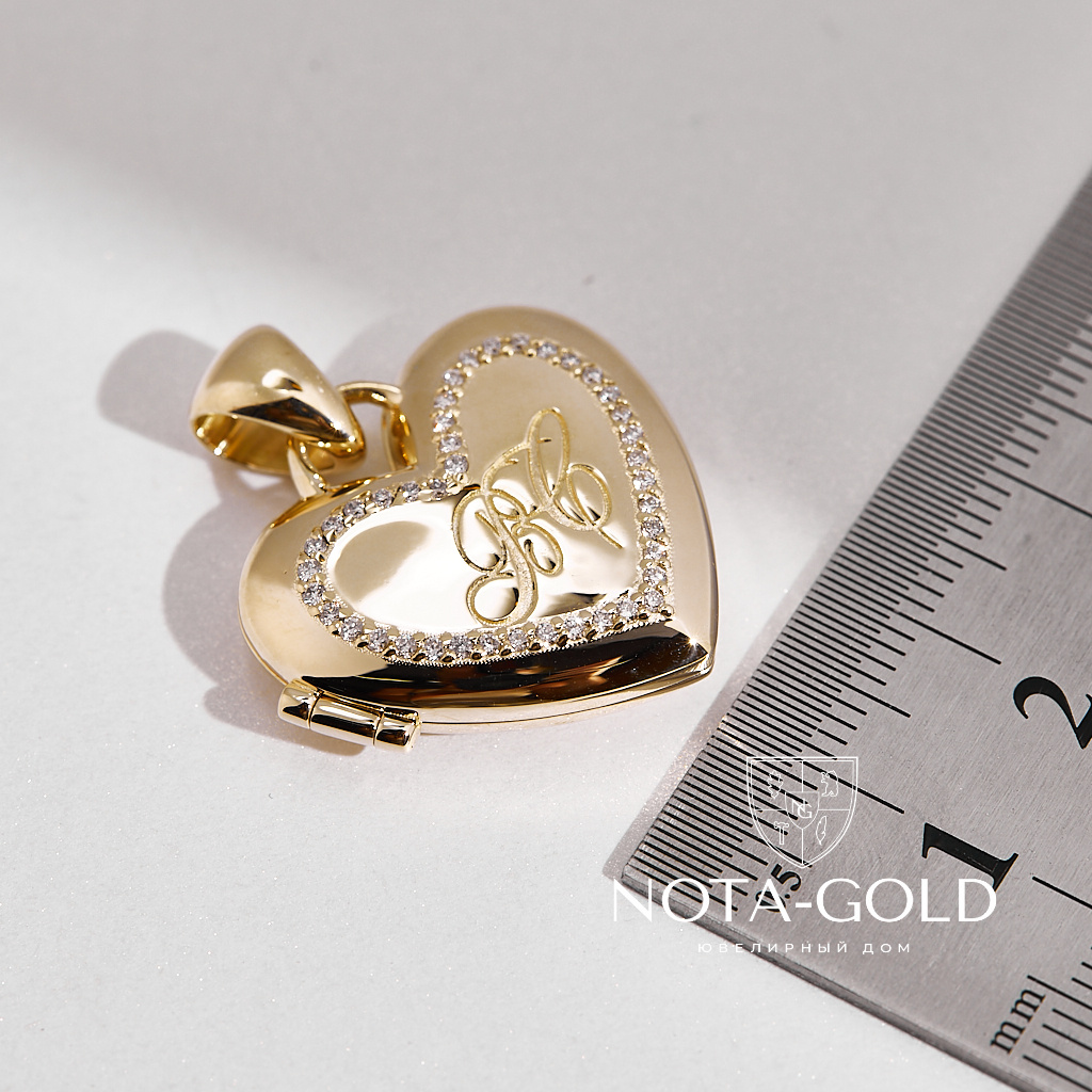 Медальон love в форме сердца под фото с бриллиантами и гравировкой инициалов (Вес: 17 гр.)