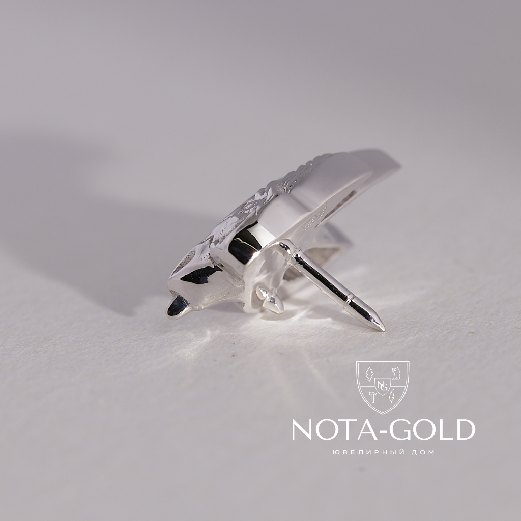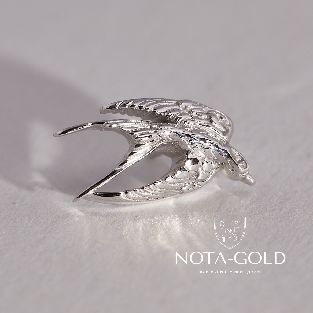 Нагрудный значок ласточка из белого золота на лацкан пиджака (Вес: 4,3 гр.)