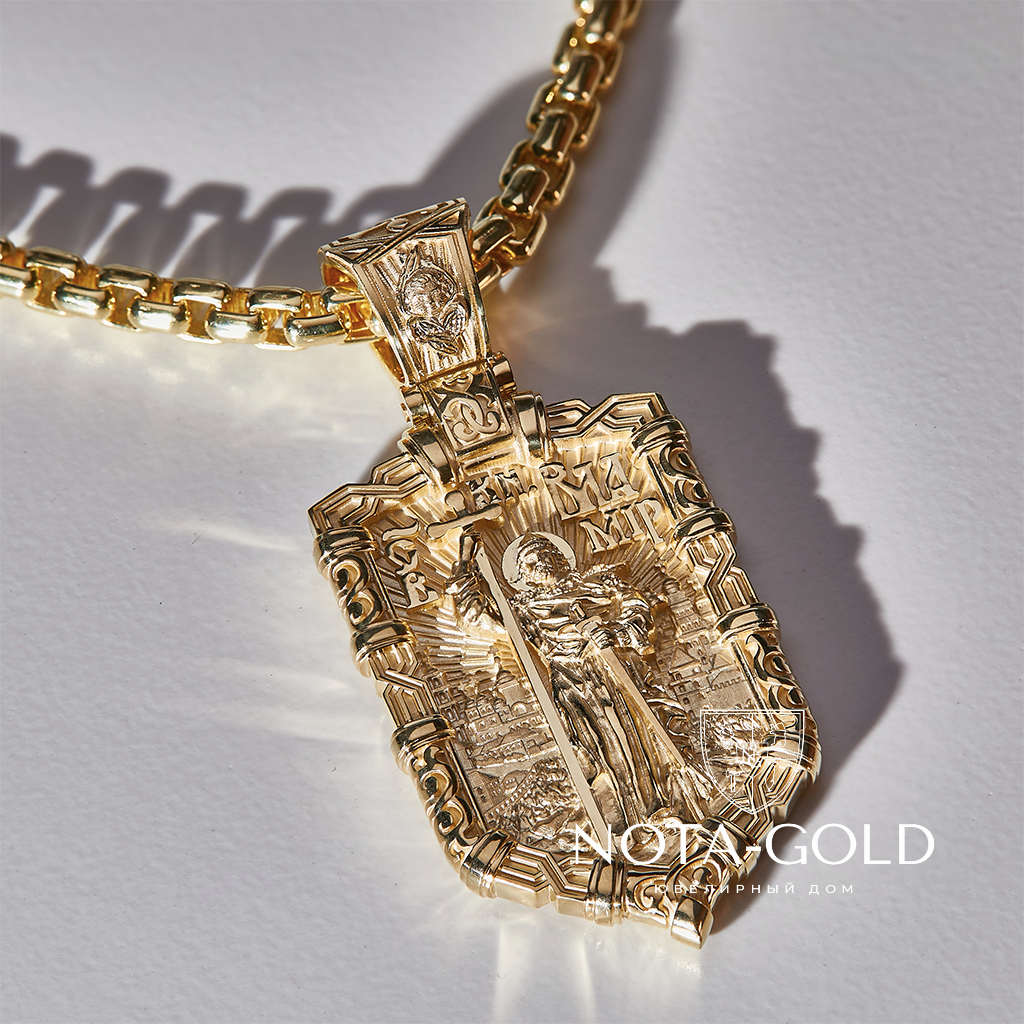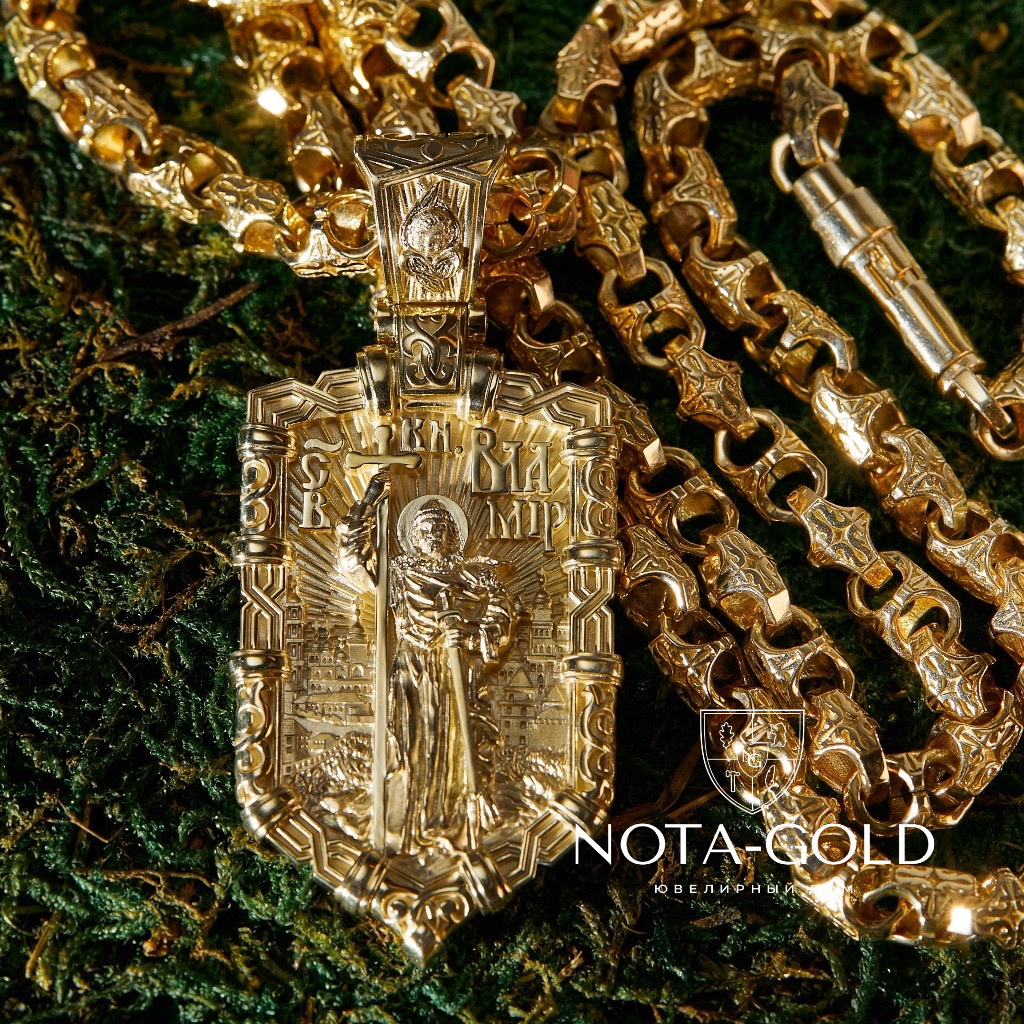 Нательная икона образок Святой Владимир из жёлтого золота (Вес: 45 гр.)