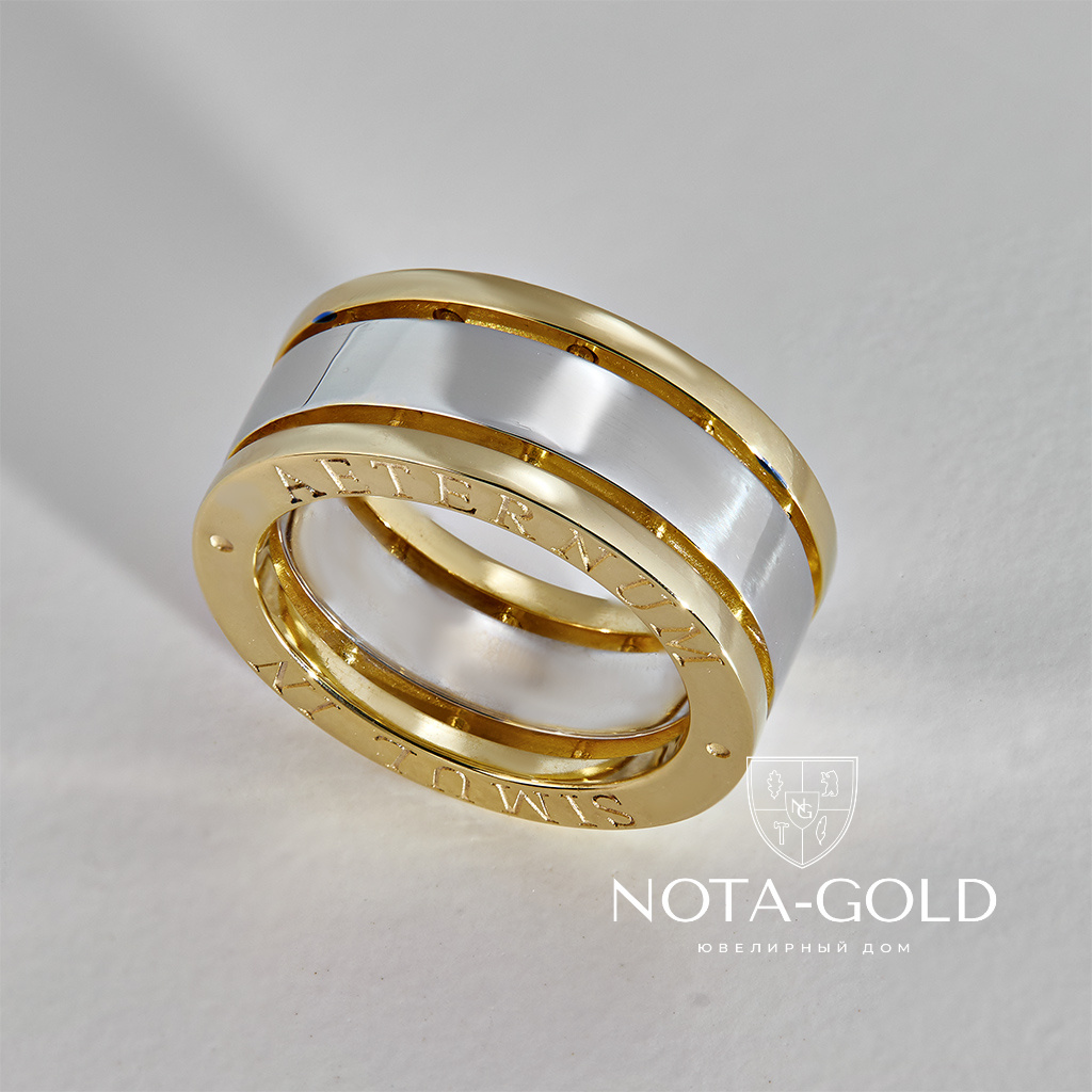 Составное кольцо из двух видов золота с гравировкой (Вес 15,5 гр.)