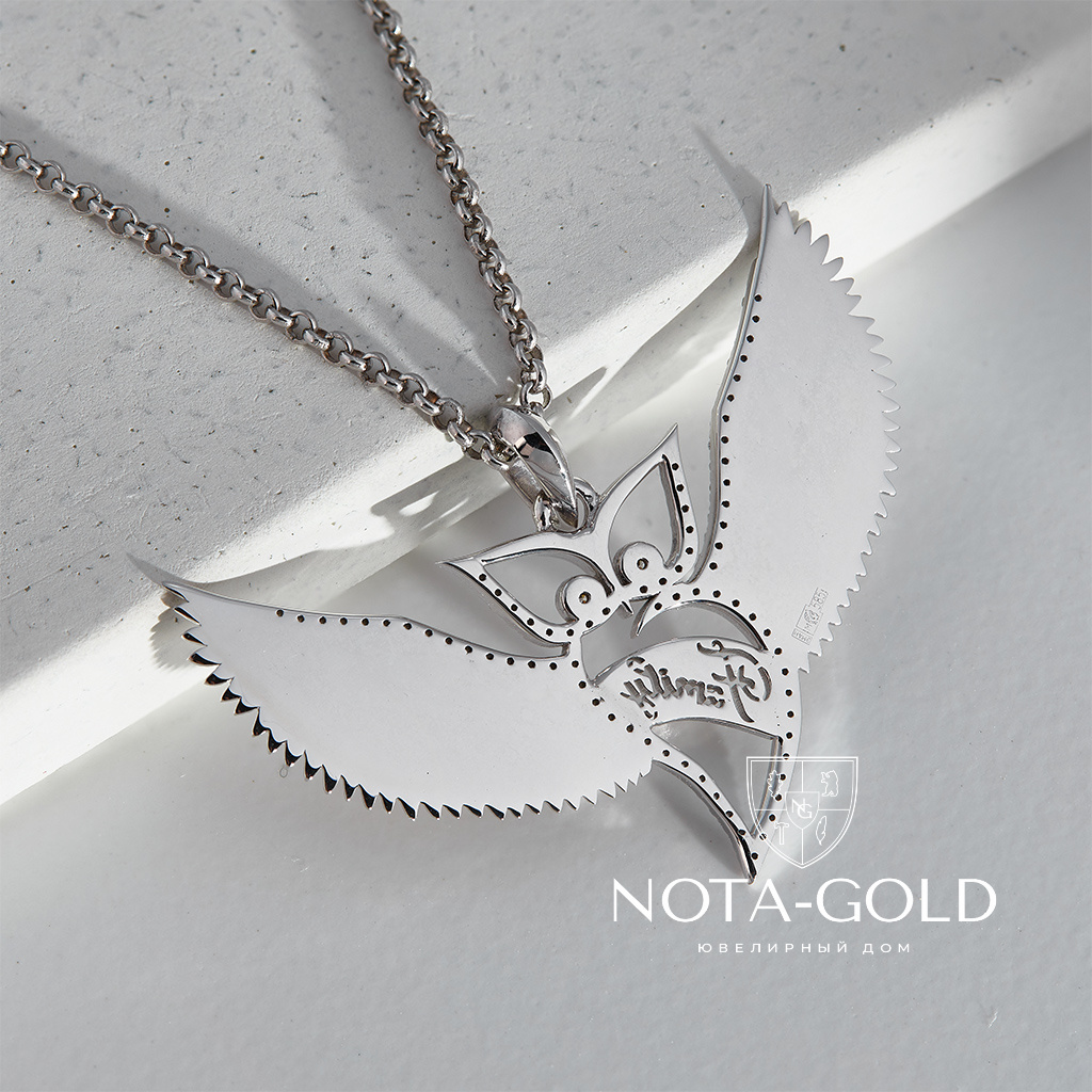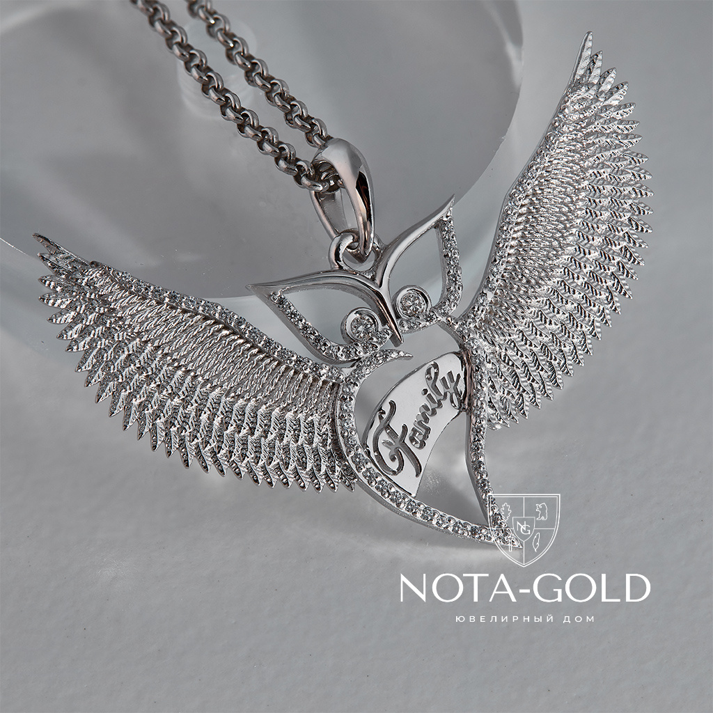 Подвеска Сова с крыльями из белого золота с бриллиантами (Вес 5,6 гр.)