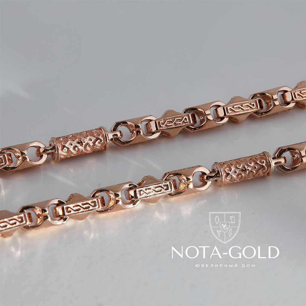 Золотая цепочка эксклюзивного плетения Краб Луксор с бочонками (Вес 38,5 гр.)