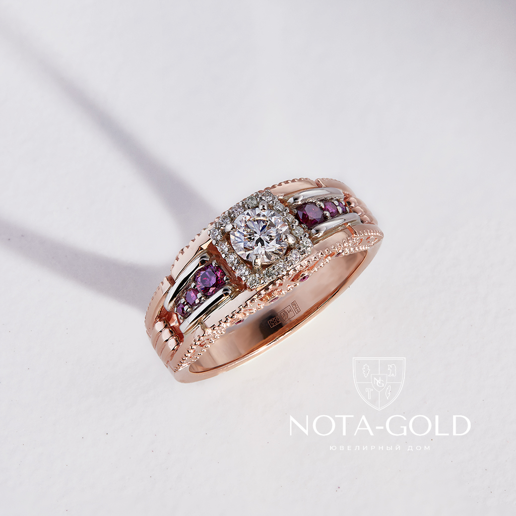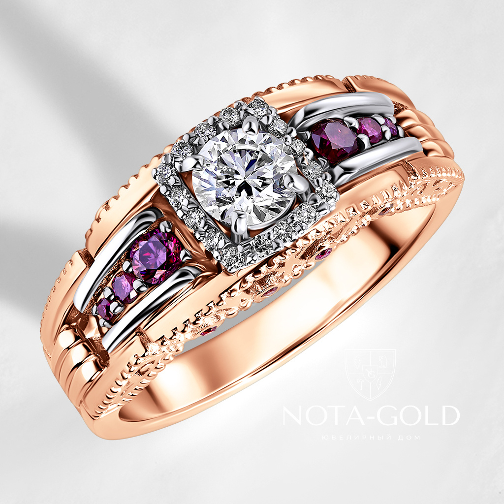 Женское кольцо из красного золота с фиолетовыми бриллиантами (Вес 6,6 гр.)