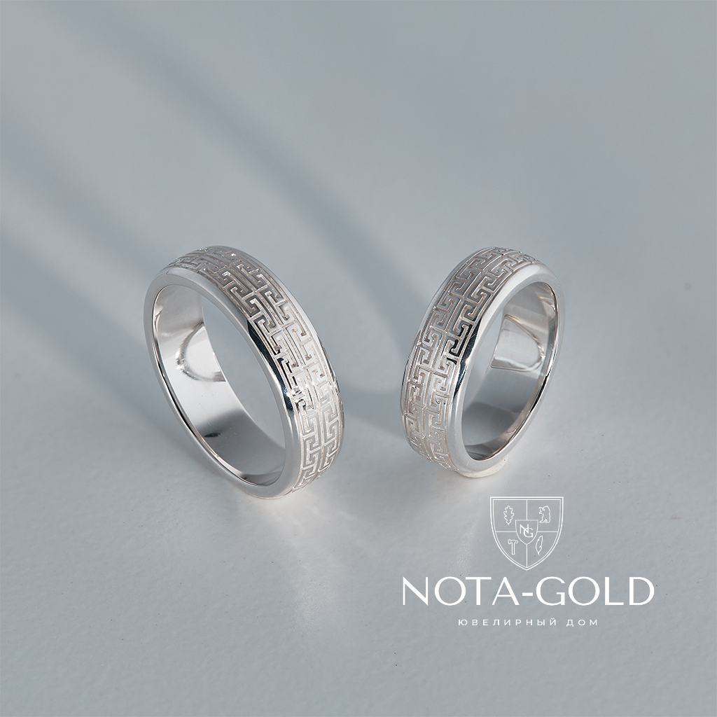 Обручальные кольца из серебра с греческим орнаментом (Вес пары 12 гр.)
