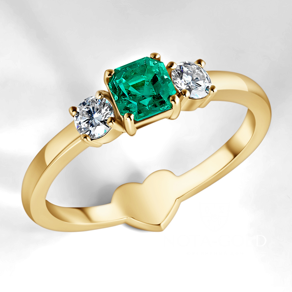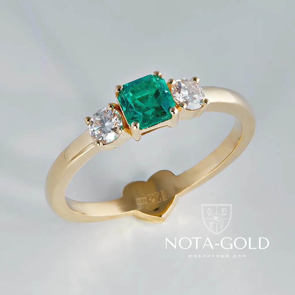 Женское золотое кольцо с бриллиантами и изумрудом (Вес 3,3 гр.)