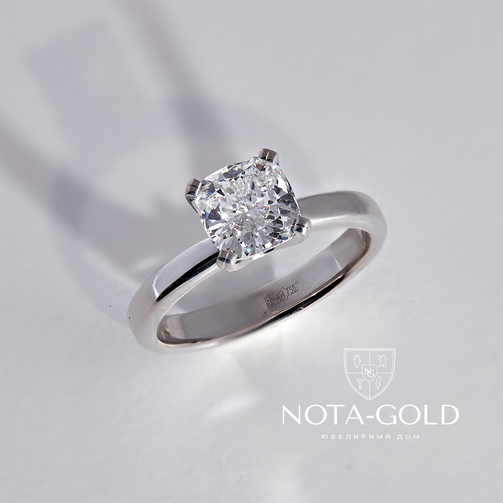 Помолвочное кольцо из белого золота с крупным бриллиантом огранки Кушон (Вес 5,7 гр.)