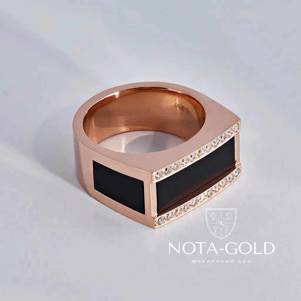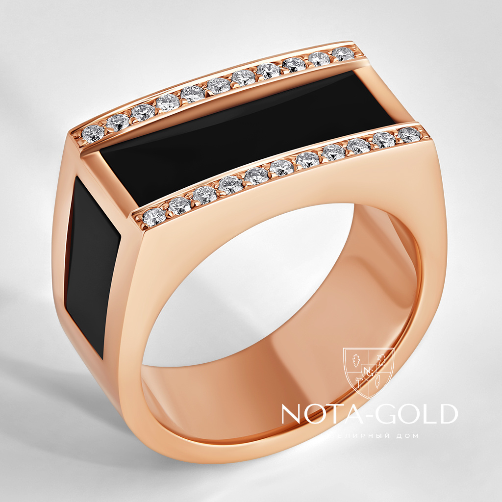 Мужская печатка из красного золота с агатами и бриллиантами (Вес 18 гр.)
