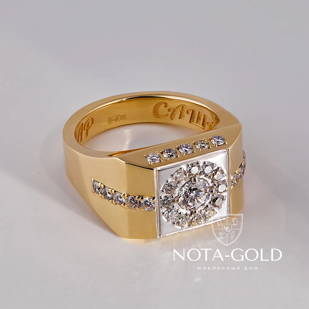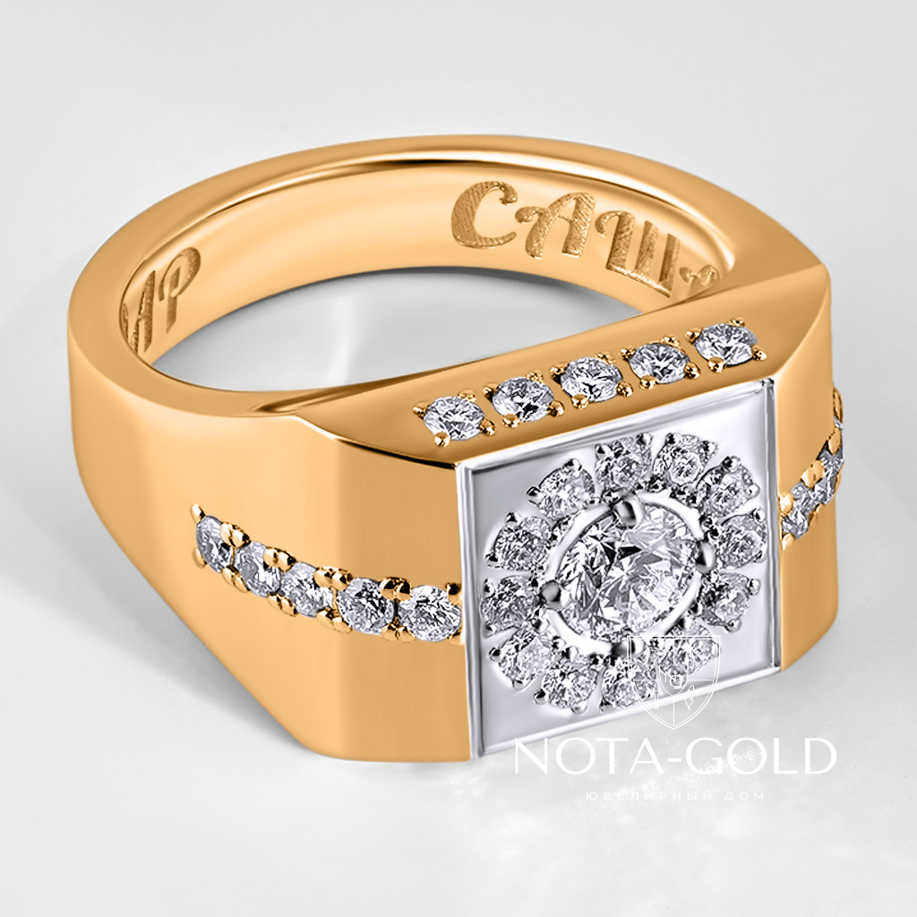 Мужская золотая печатка с бриллиантами и личной гравировкой (Вес 15,2 гр.)