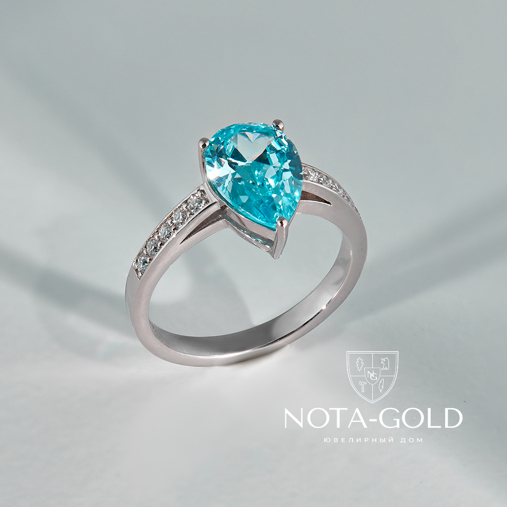 Женское кольцо из белого золота с бриллиантами и аквамарином (Вес 3,6 гр.)