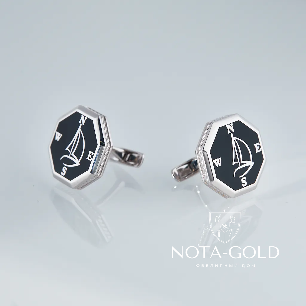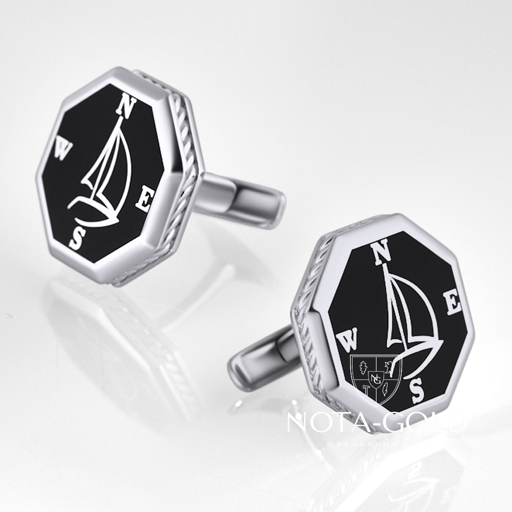 Запонки из серебра и эмали с рисунком (Вес 13,3 гр.)