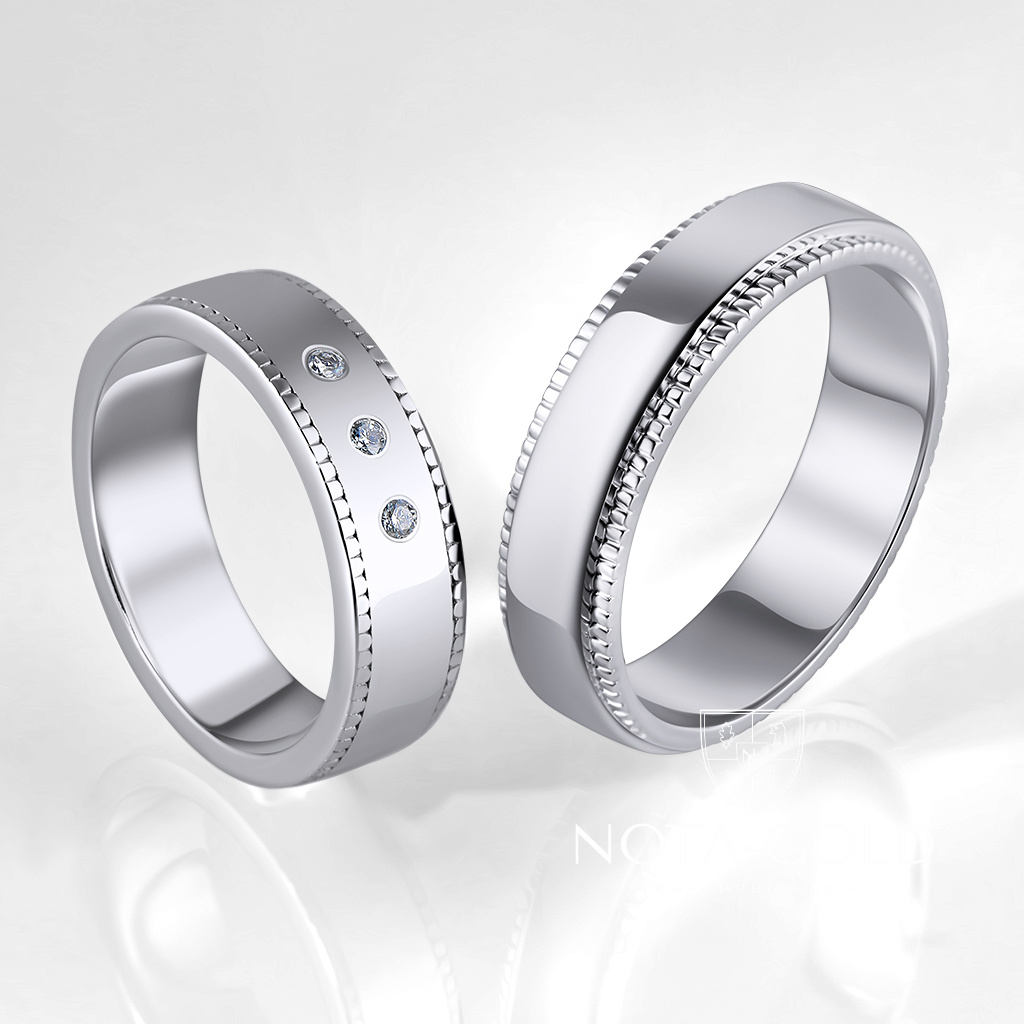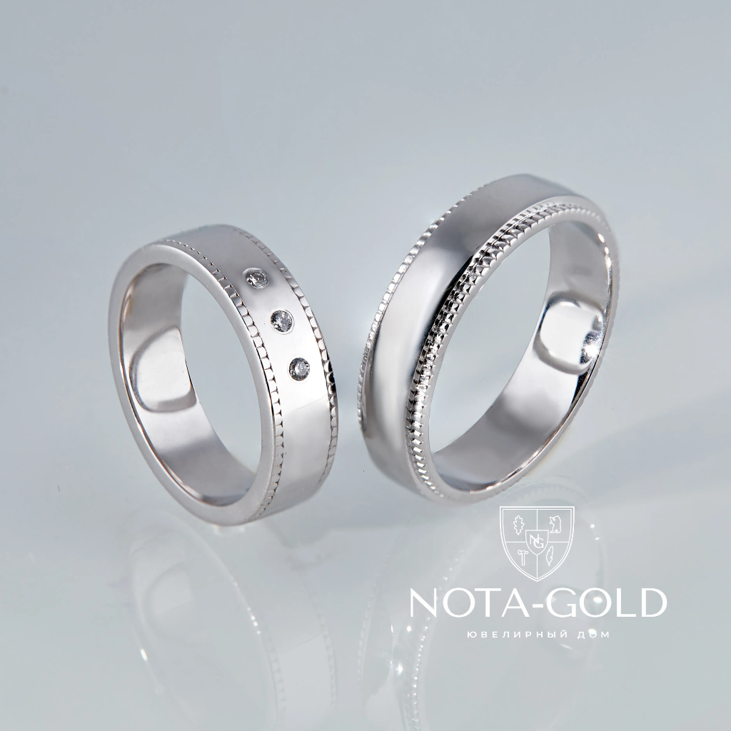 Обручальные кольца из белого золота с тремя бриллиантами в женском кольце (Вес пары 11,5 гр.)