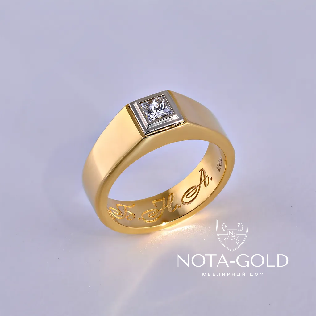 Мужское золотое кольцо с бриллиантом и гравировкой (Вес 15,2 гр.)