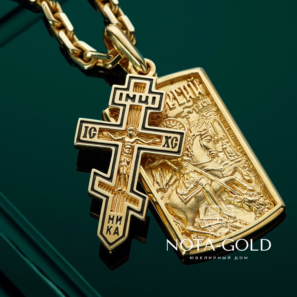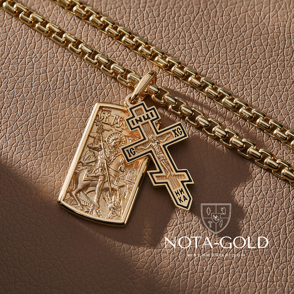 Золотая нательная иконка св Георгий с крестиком (Вес 23,5 гр.)