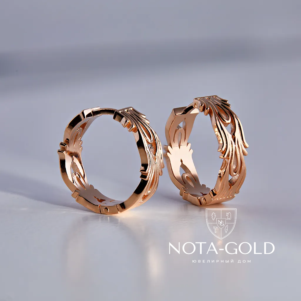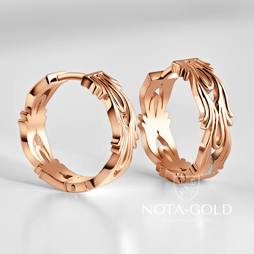 Серьги кольца из красного золота с резным узором (Вес 6,8 гр.)
