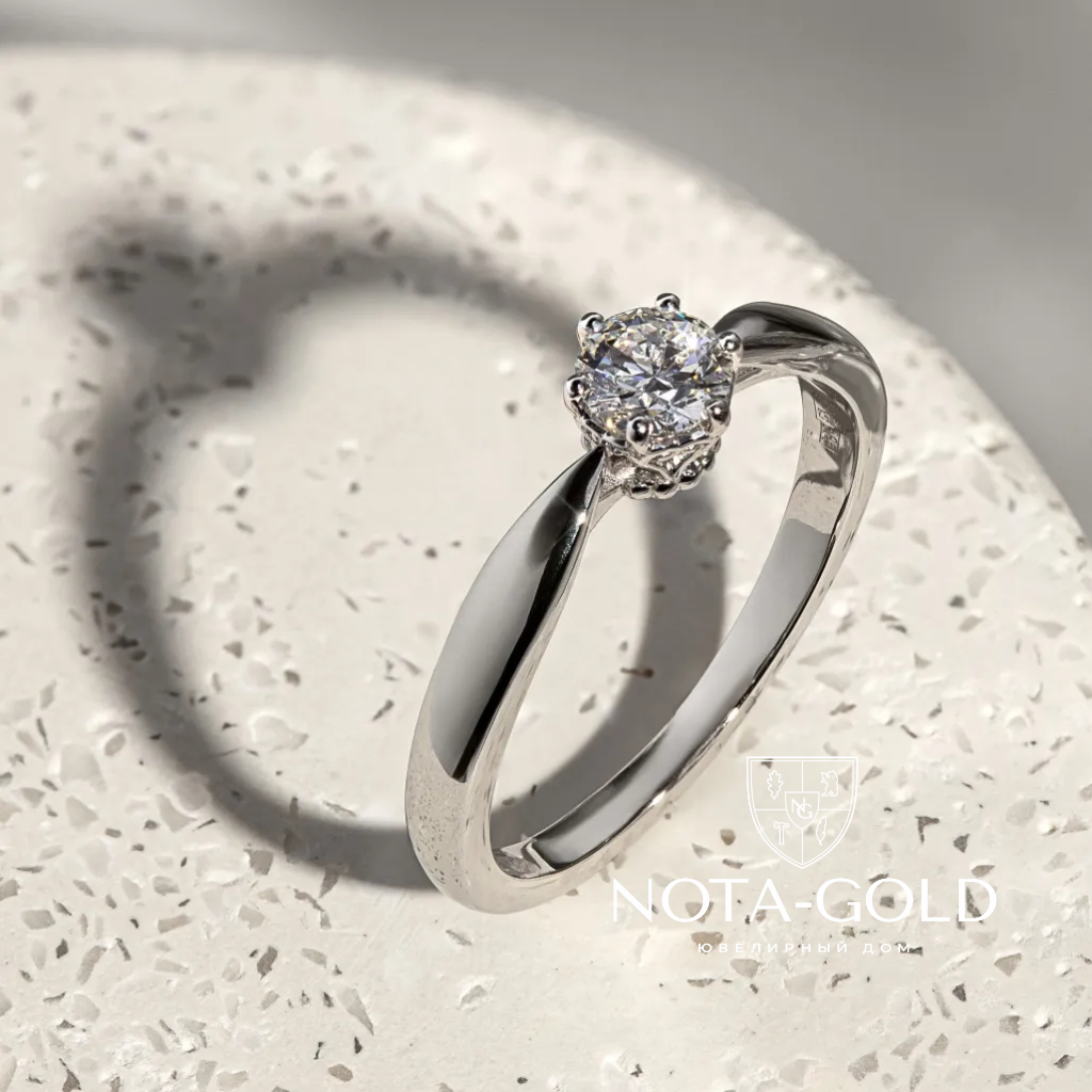 Помолвочное узкое кольцо из белого золота с бриллиантом — это олицетворение утонченной элегантности и неподвластной времени романтики. Весом всего 2,8 грамма, оно нежно облегает палец, создавая эффект невесомости и деликатности. Элегантная форма кольца, плавно переходящая в уголки, словно обнимает сердце, символизируя вечную любовь и преданность. Бриллиант, сверкающий в центре, притягивает взгляды и дарит свет, наполняя окружающее пространство искренними эмоциями и надеждами на совместное будущее. Каждый граненый уголок камня отражает не только свет, но и тепло чувств, которые связывают двоих. Это кольцо идеально подойдет для того, чтобы засвидетельствовать самый важный момент в жизни — предложение руки и сердца. Белое золото, символизирующее чистоту и стойкость, делает его еще более значимым, подчеркивая нежность и силу чувств, которые будут сопровождать вашу пару на протяжении всей жизни. Помолвочное кольцо — это не просто украшение, это старт новой захватывающей главы, наполненной общими мечтами, планами и неизменной поддержкой друг друга.