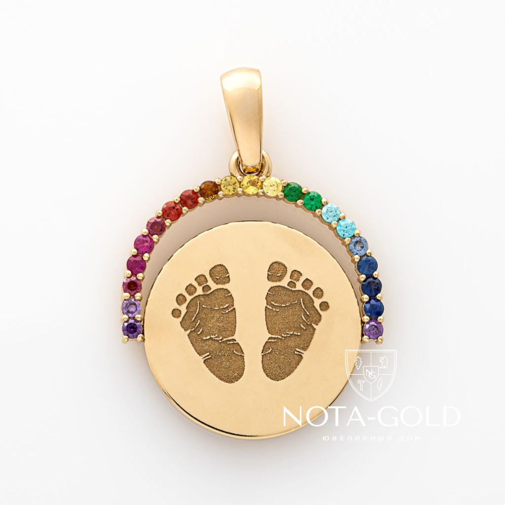 Вращающаяся подвеска из желтого золота с гравировкой и цветными фианитами (Вес 3,2 гр.)