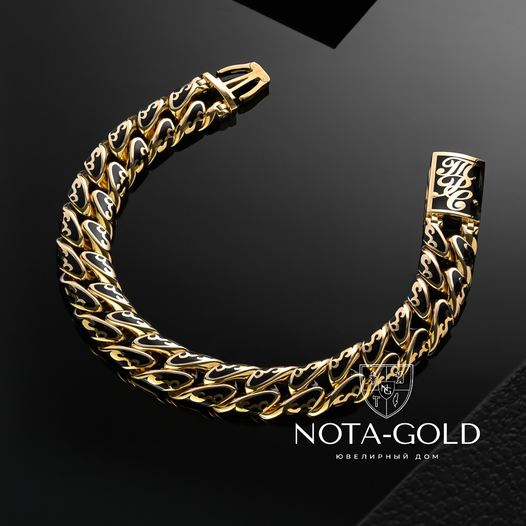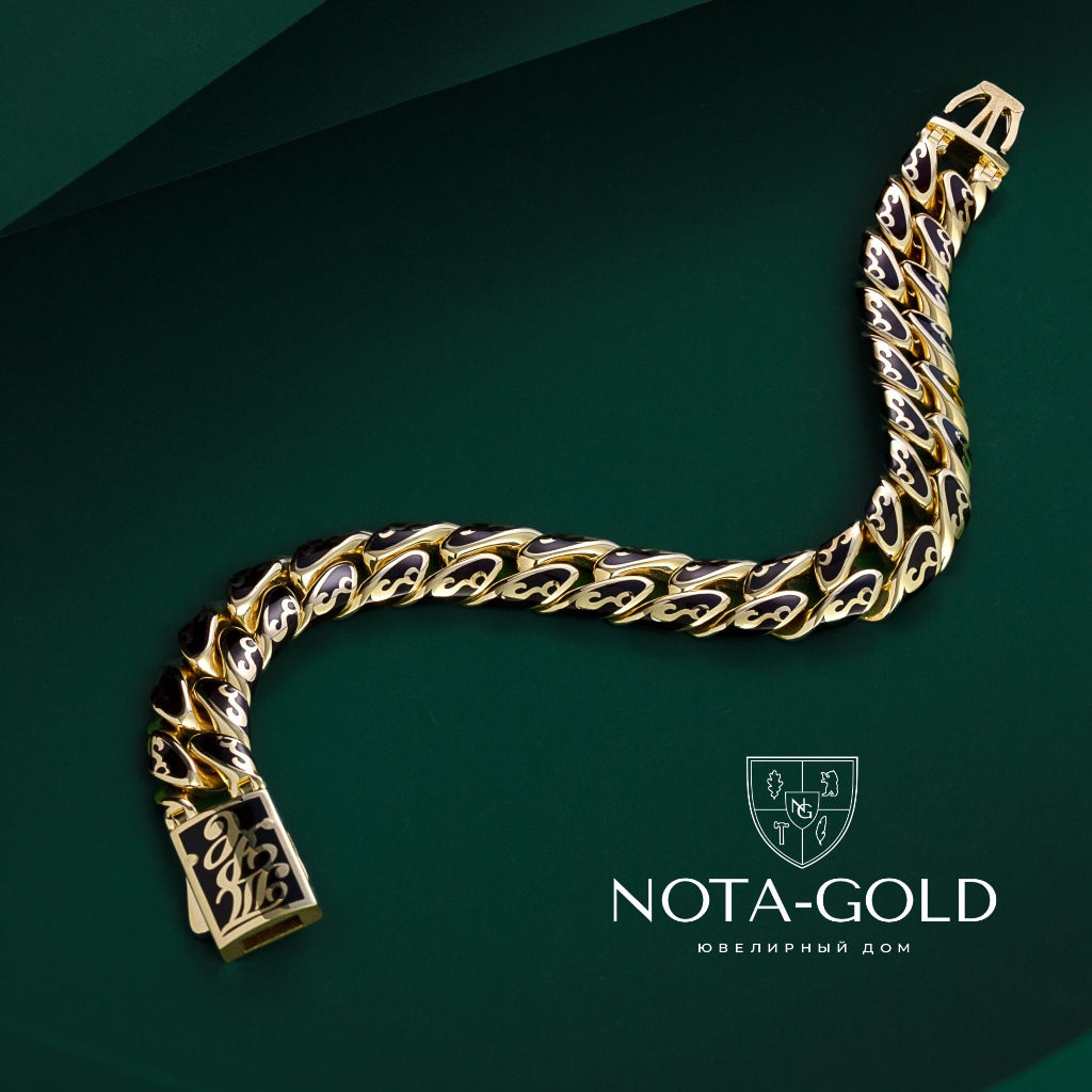 Мужской браслет из желтого золота с эмалью и инициалами (Вес 87,5 гр.)