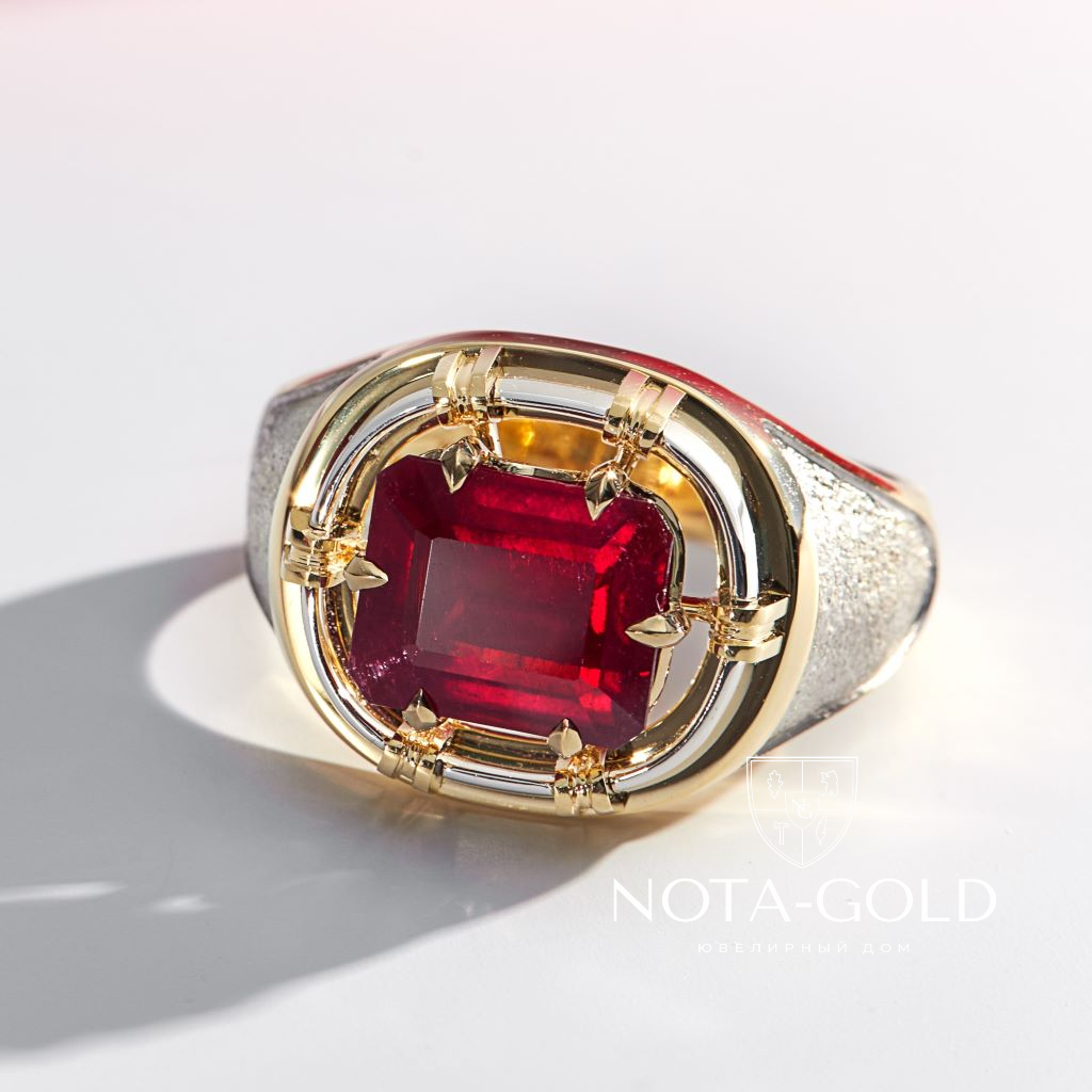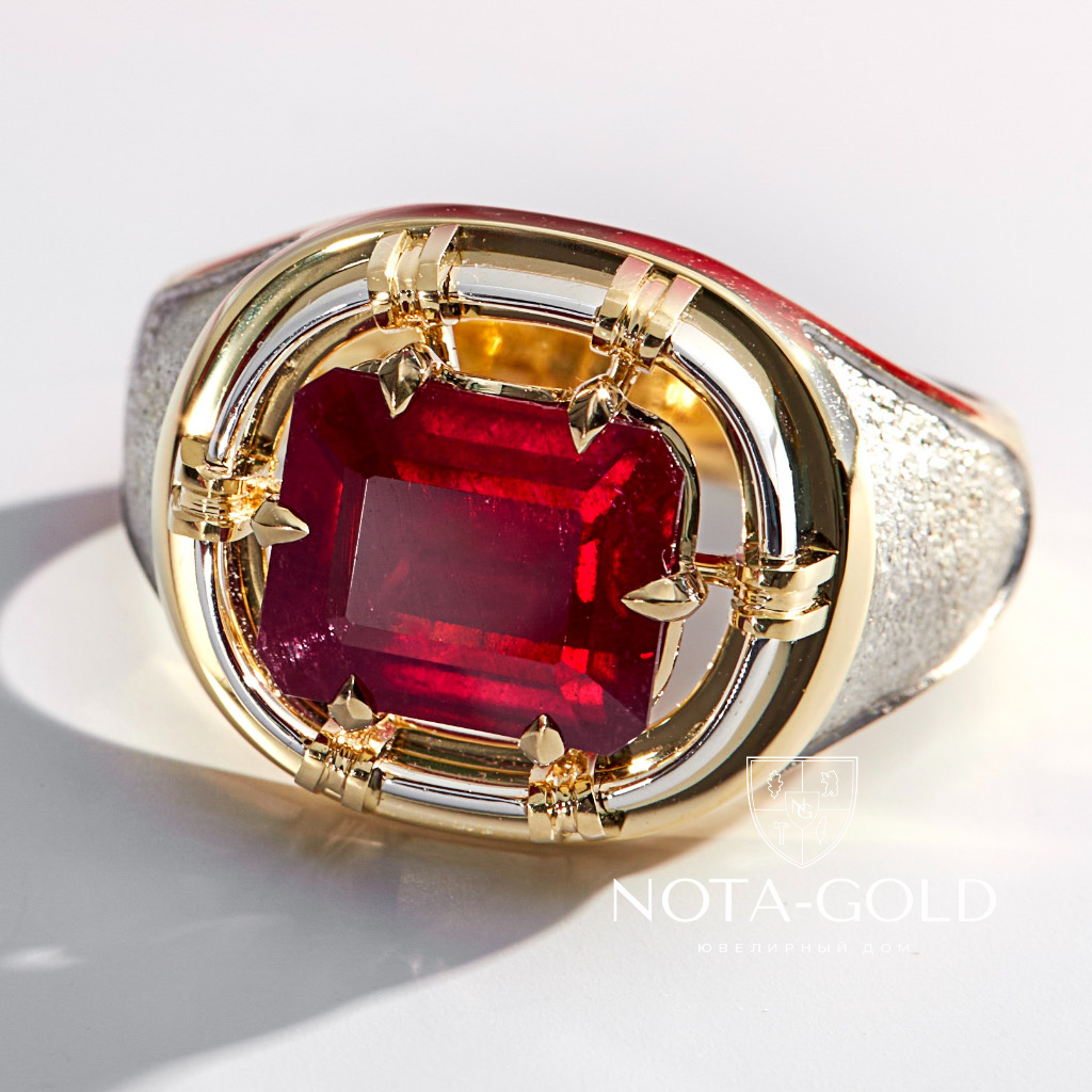 Перстень из желтого и белого золота с крупным рубином октагон (Вес 17,5 гр.)