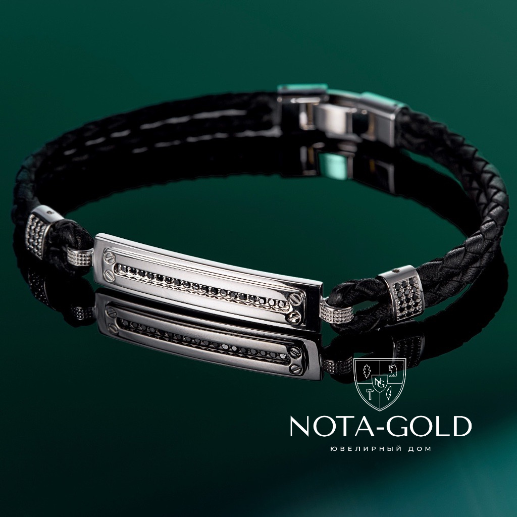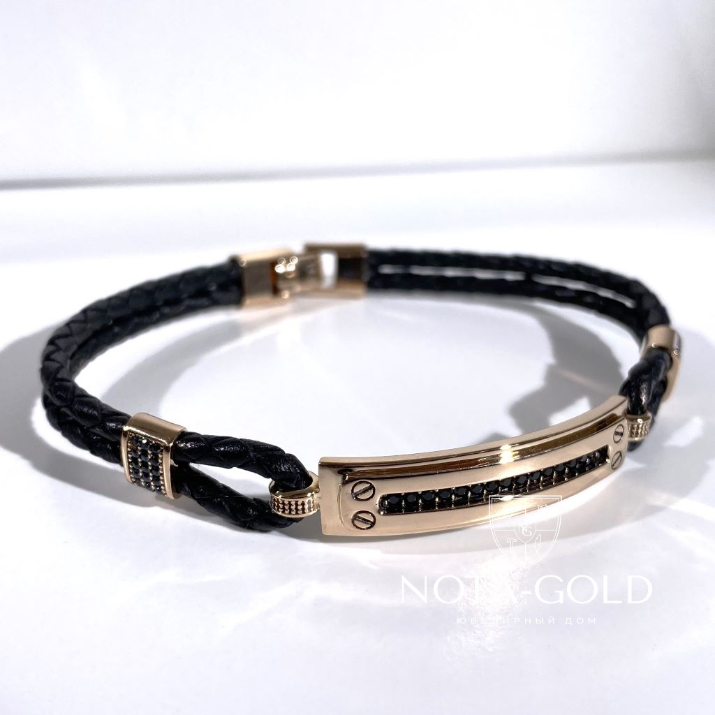 Кожаный плетеный браслет с золотой вставкой с бриллиантами (Вес 16 гр.)
