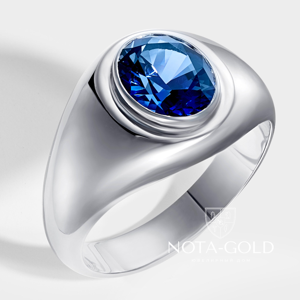 Мужское кольцо из белого золота с овальным сапфиром (Вес 10,3 гр.)