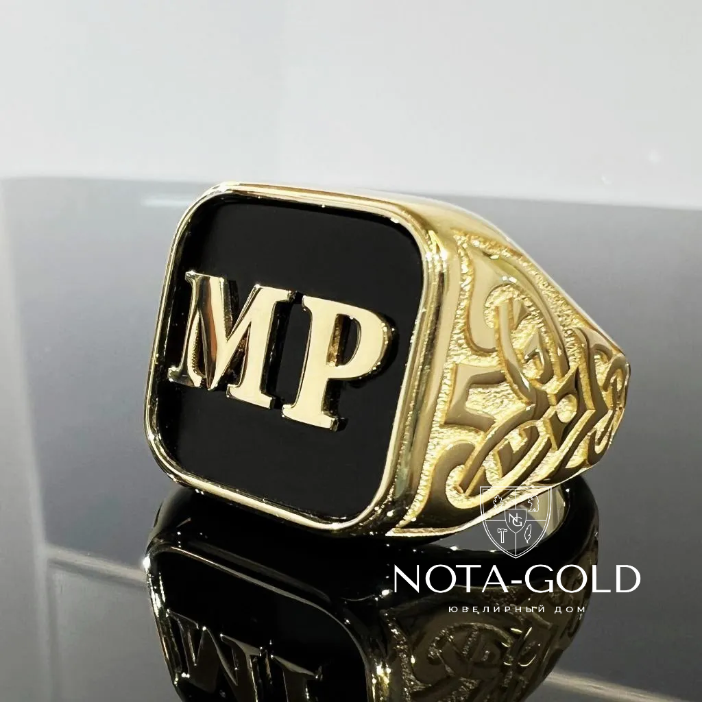 Мужская печатка из желтого золота с агатом и инициалами (Вес 25,6 гр.)