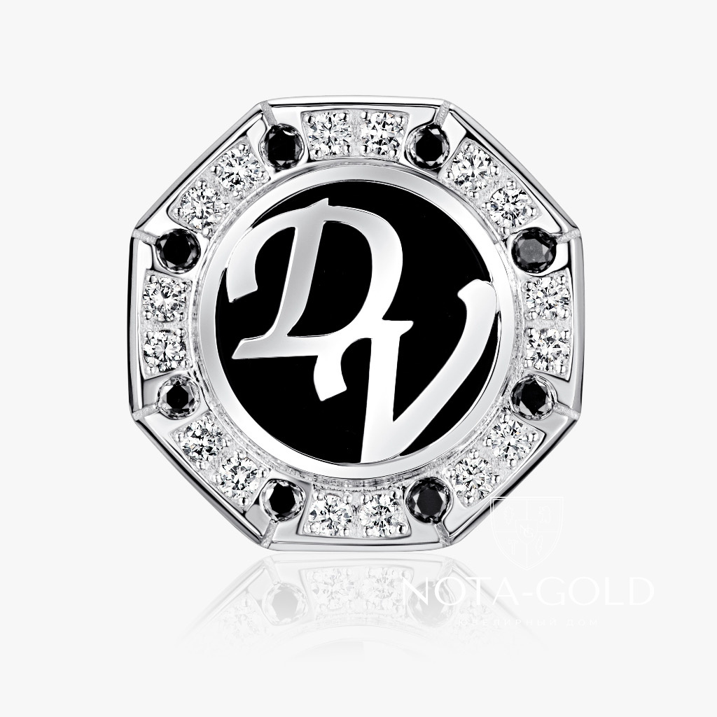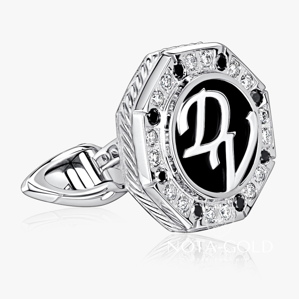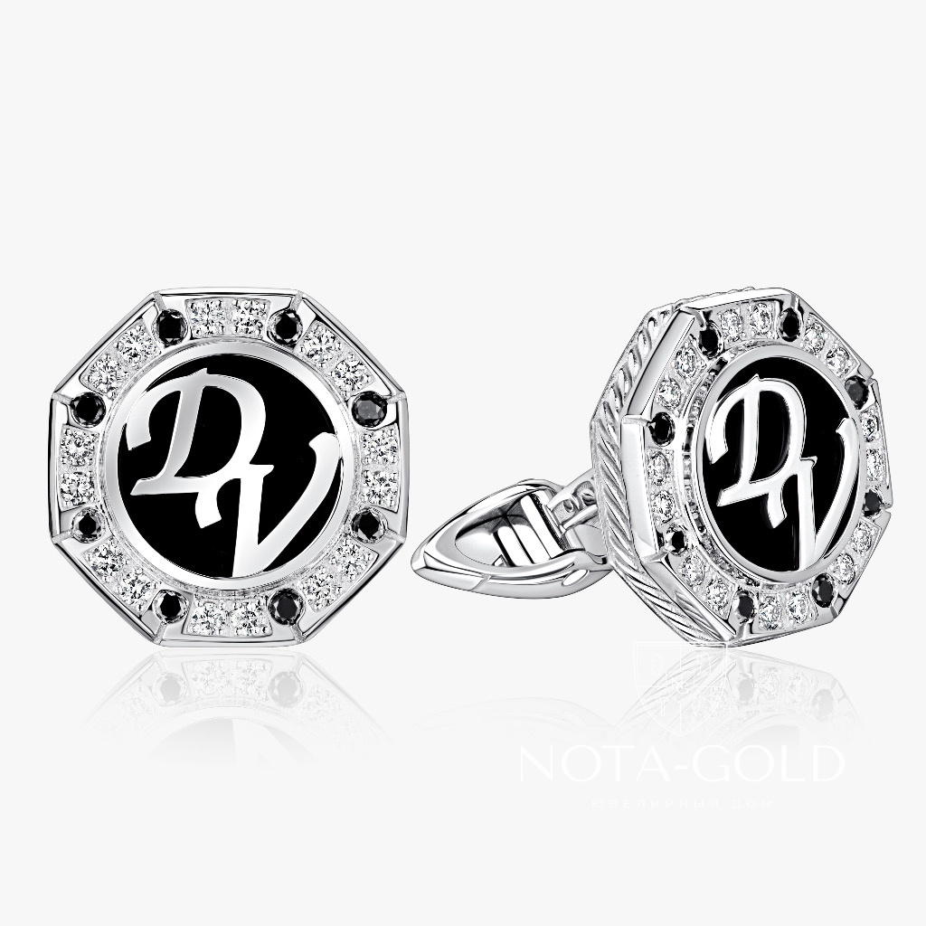 Запонки с инициалами VD из белого золота с бриллиантами и агатами (Вес 12,6 гр.)