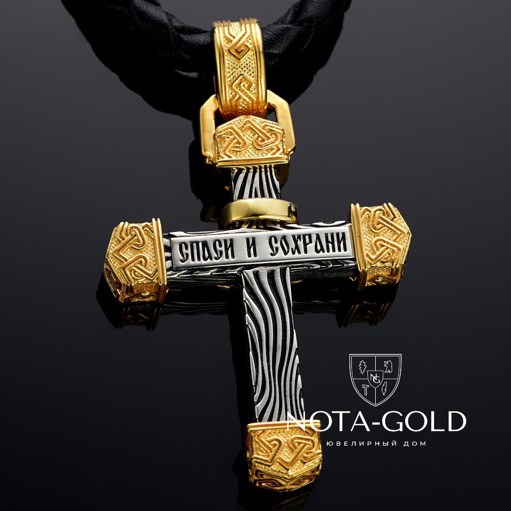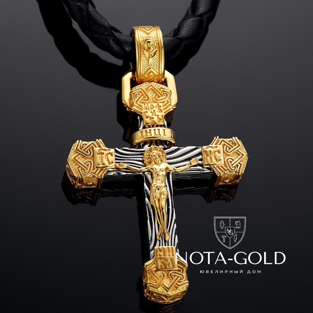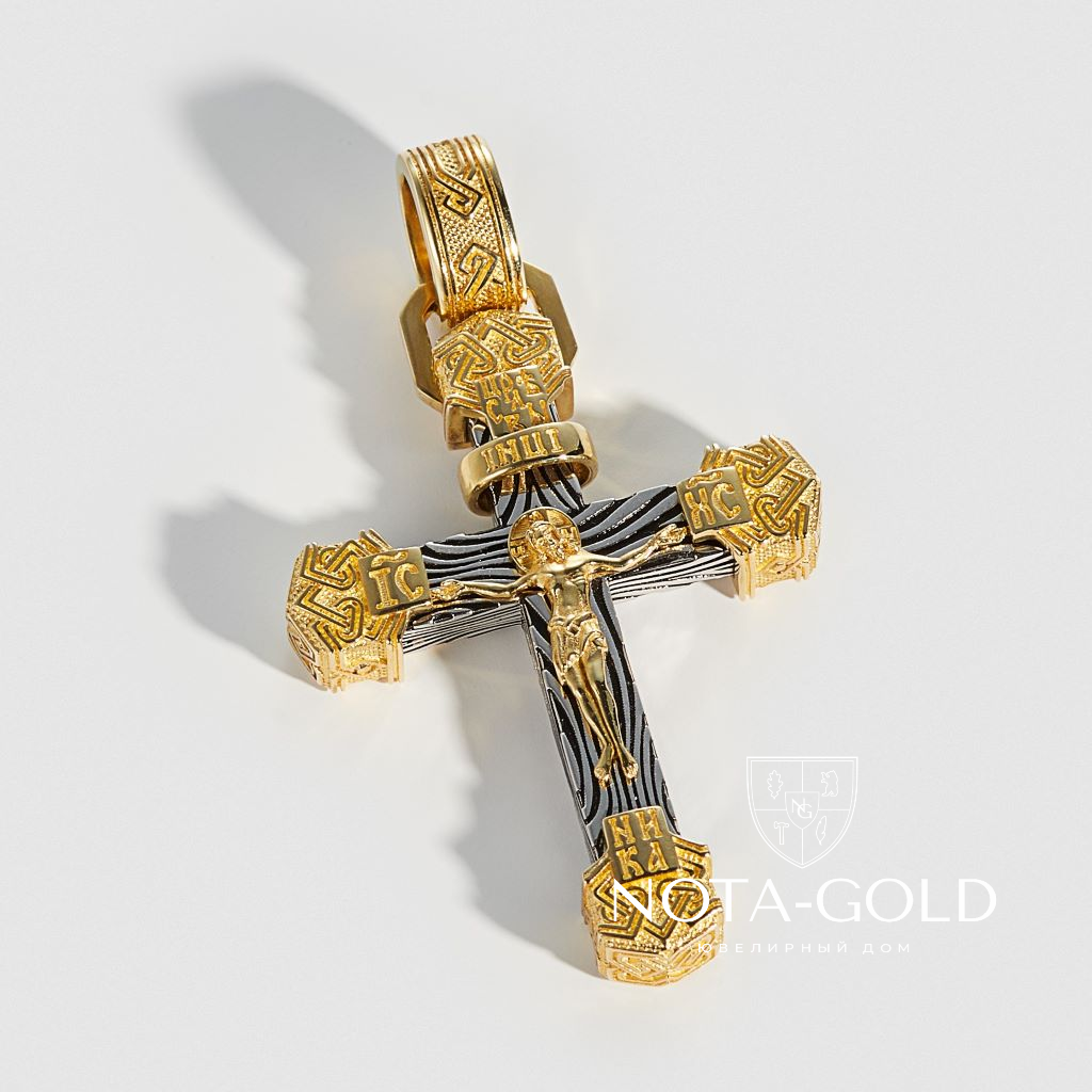 Нательный малый православный мужской крестик с чернёным узором из золота (Вес: 13,7 гр.)