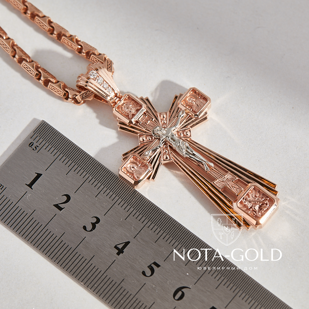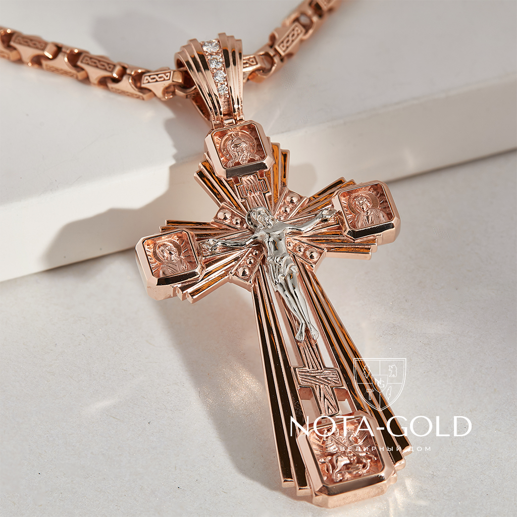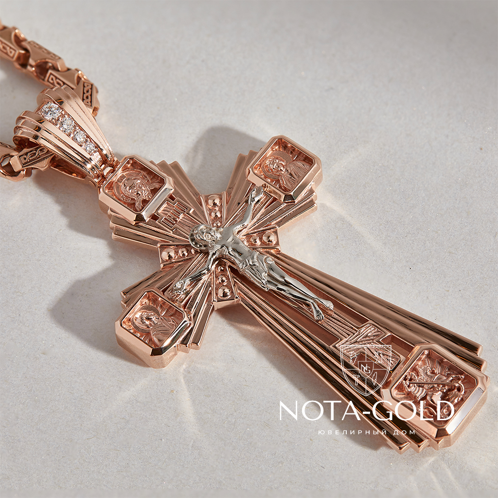 Золотой крест ручной работы с ликами святых и бриллиантами (Вес 27 гр.)