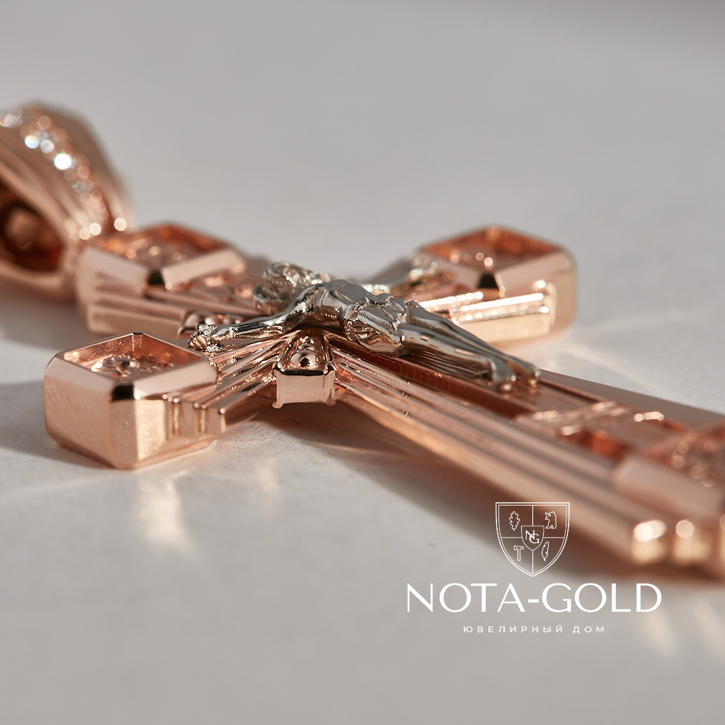 Золотой крест ручной работы с ликами святых и бриллиантами (Вес 17,5 гр.)