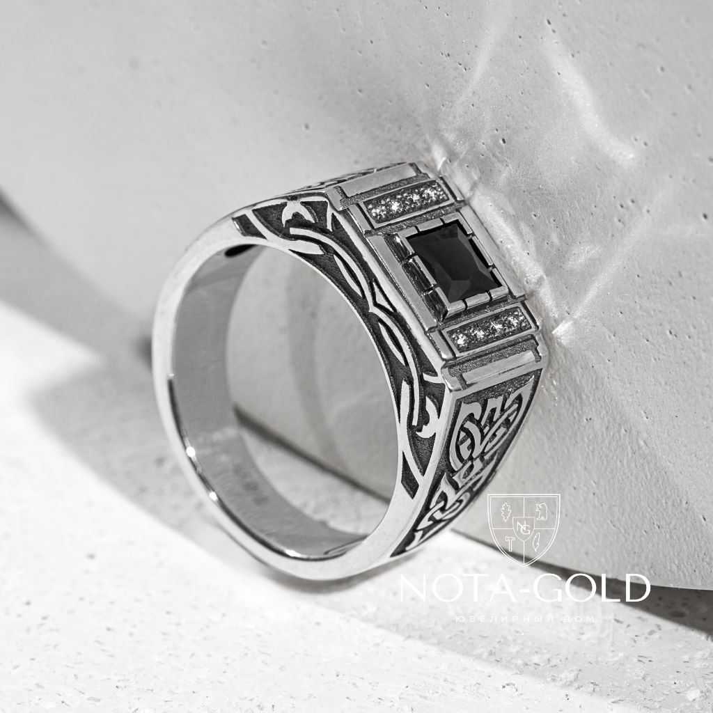 Мужское кольцо печатка с орнаментом из серебра (Вес: 13,6 гр.)