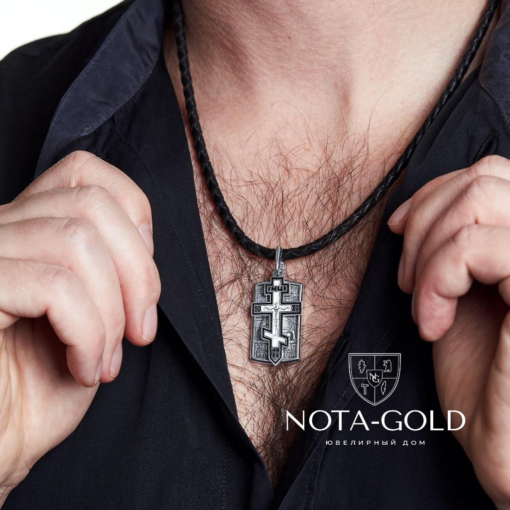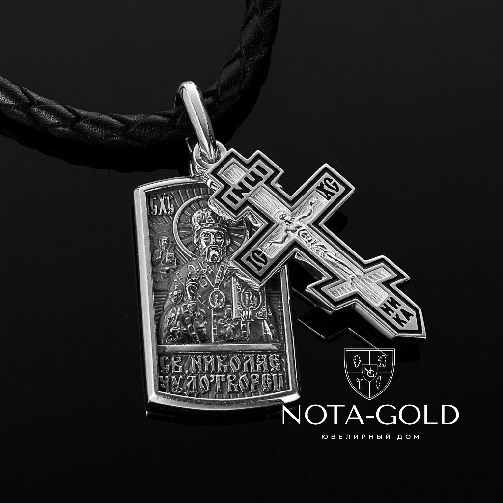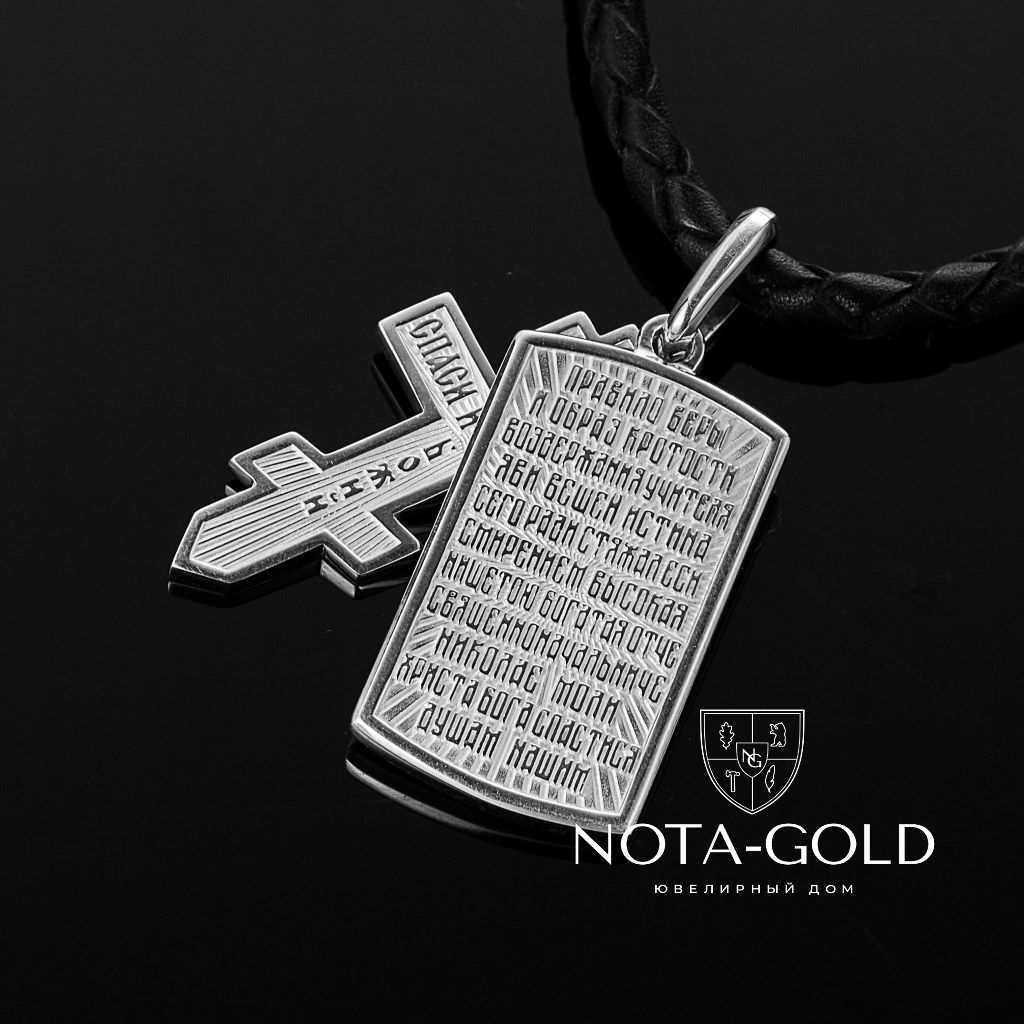 Серебряная нательная иконка с крестиком (Вес 16 гр.)