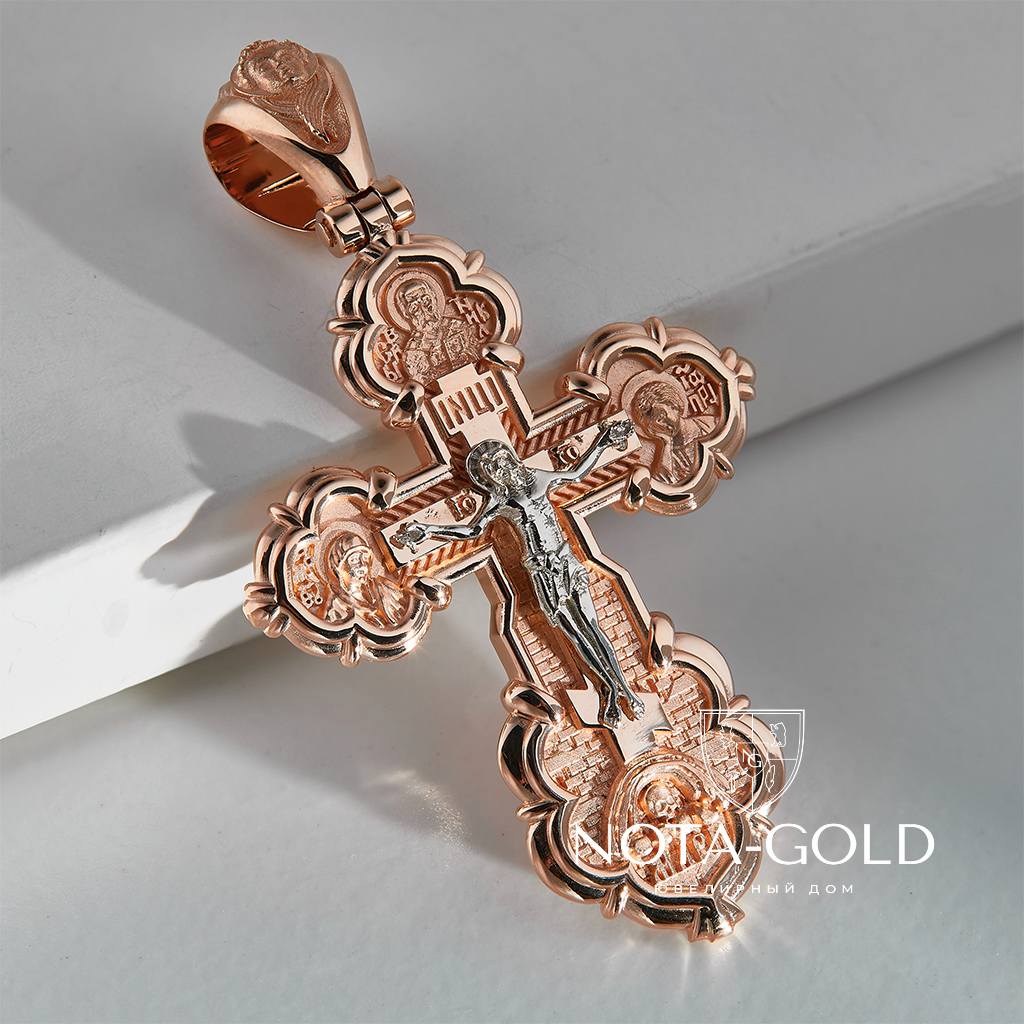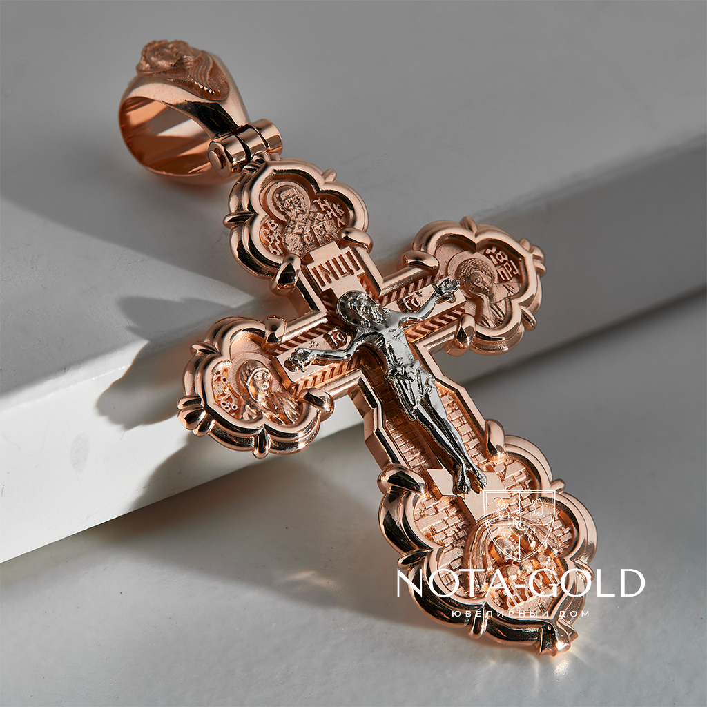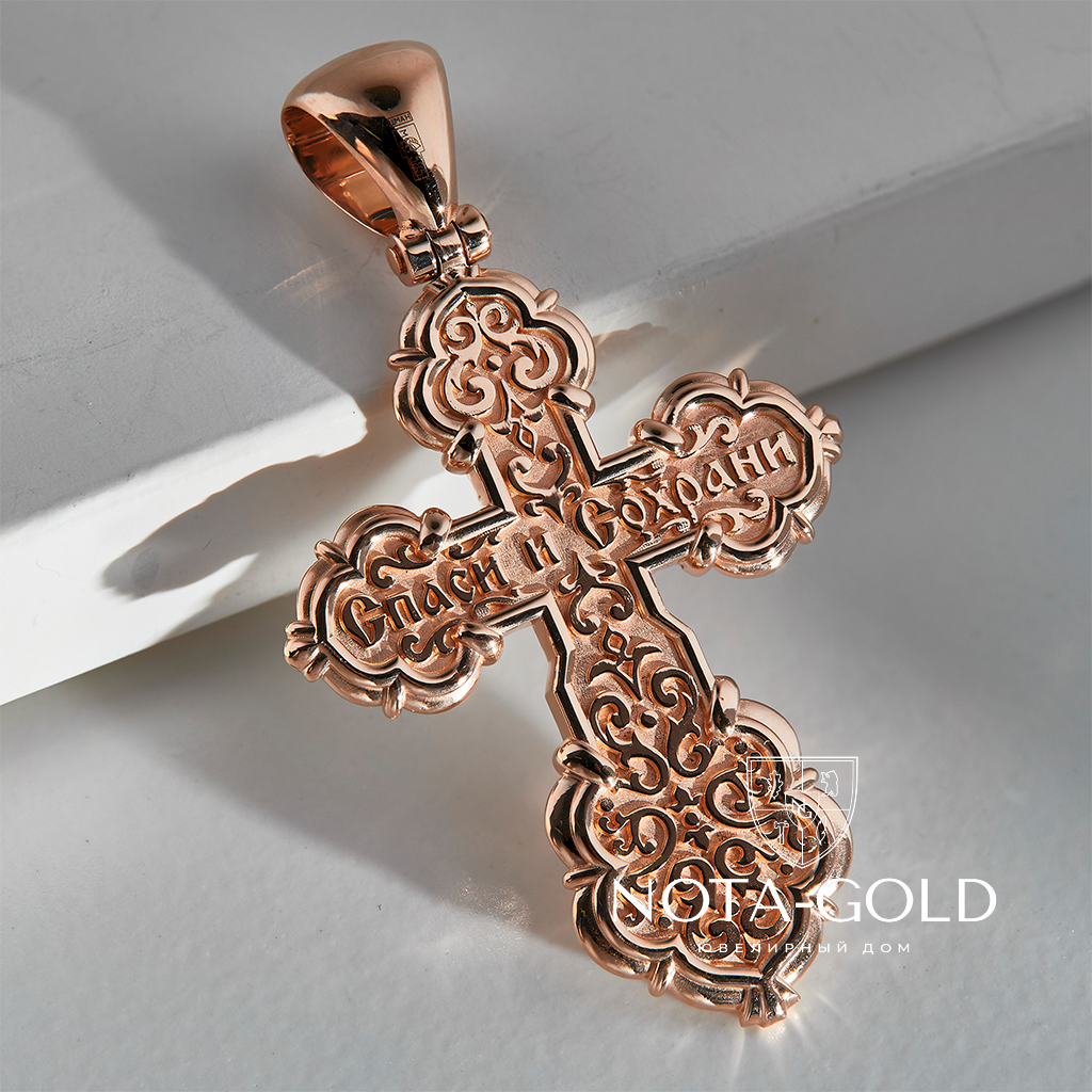 Православный крест Спаси и сохрани из позолоченного серебра с распятием (Вес: 14 гр.)