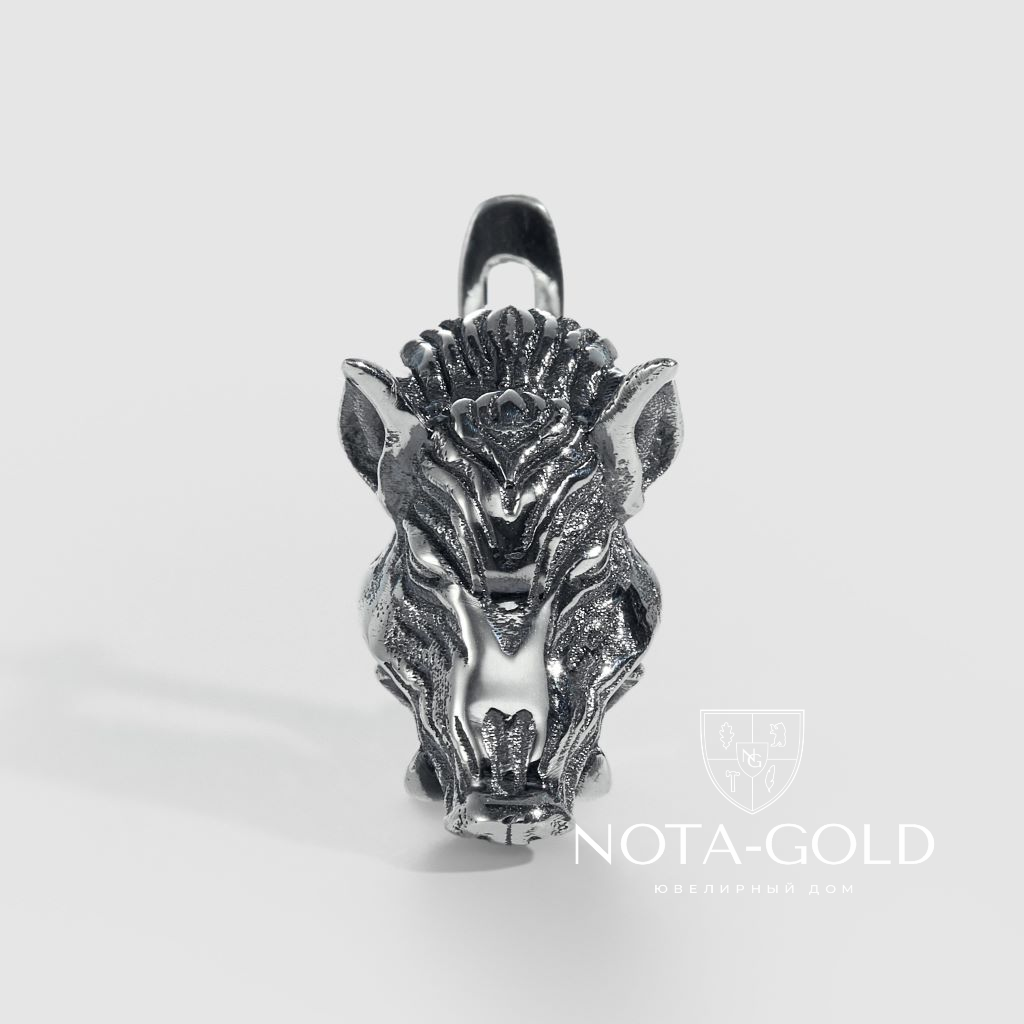Серьга Кабан из серебра с чернением (Вес 2,1 гр.)