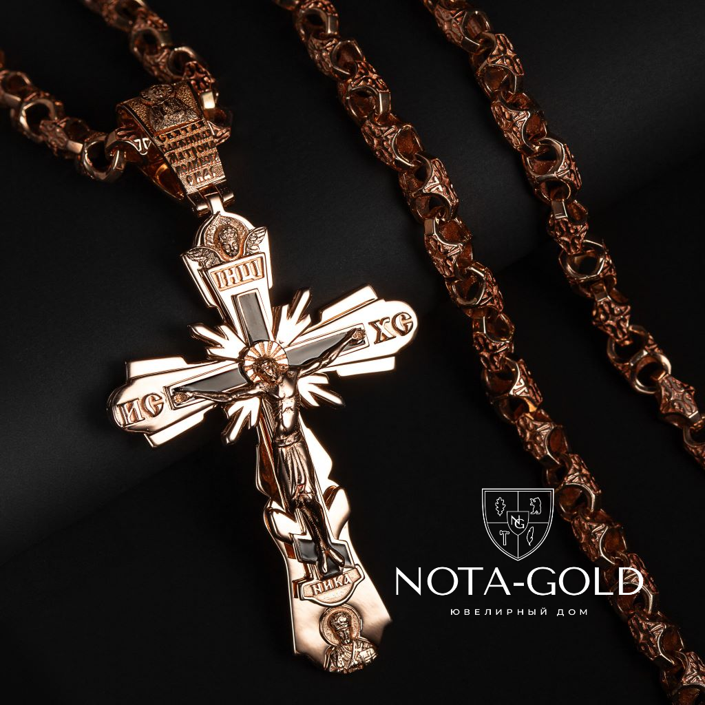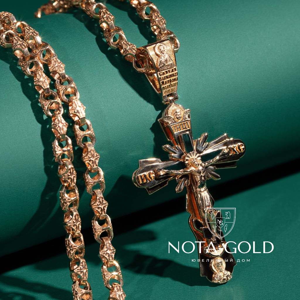 Нательный православный крест из серебра с позолотой и эмалью (Вес 21 гр.)