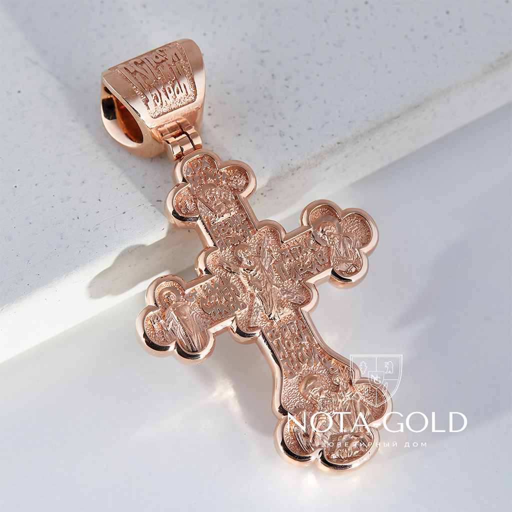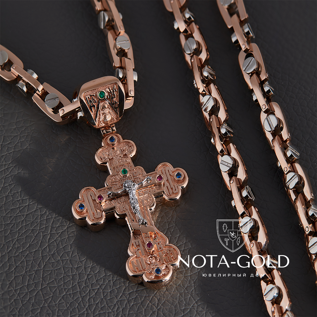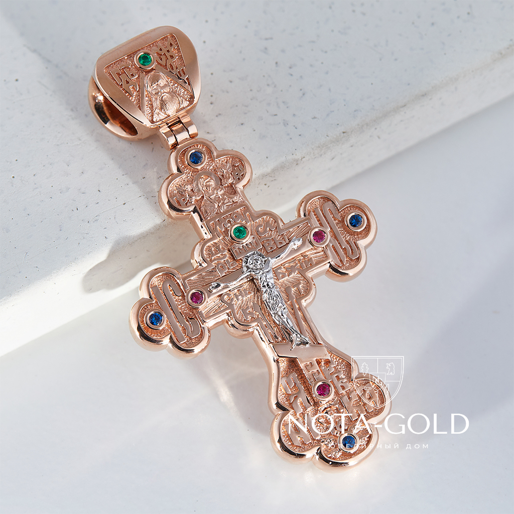 Позолоченный нательный крест из серебра с драгоценными камнями (Вес 19 гр.)