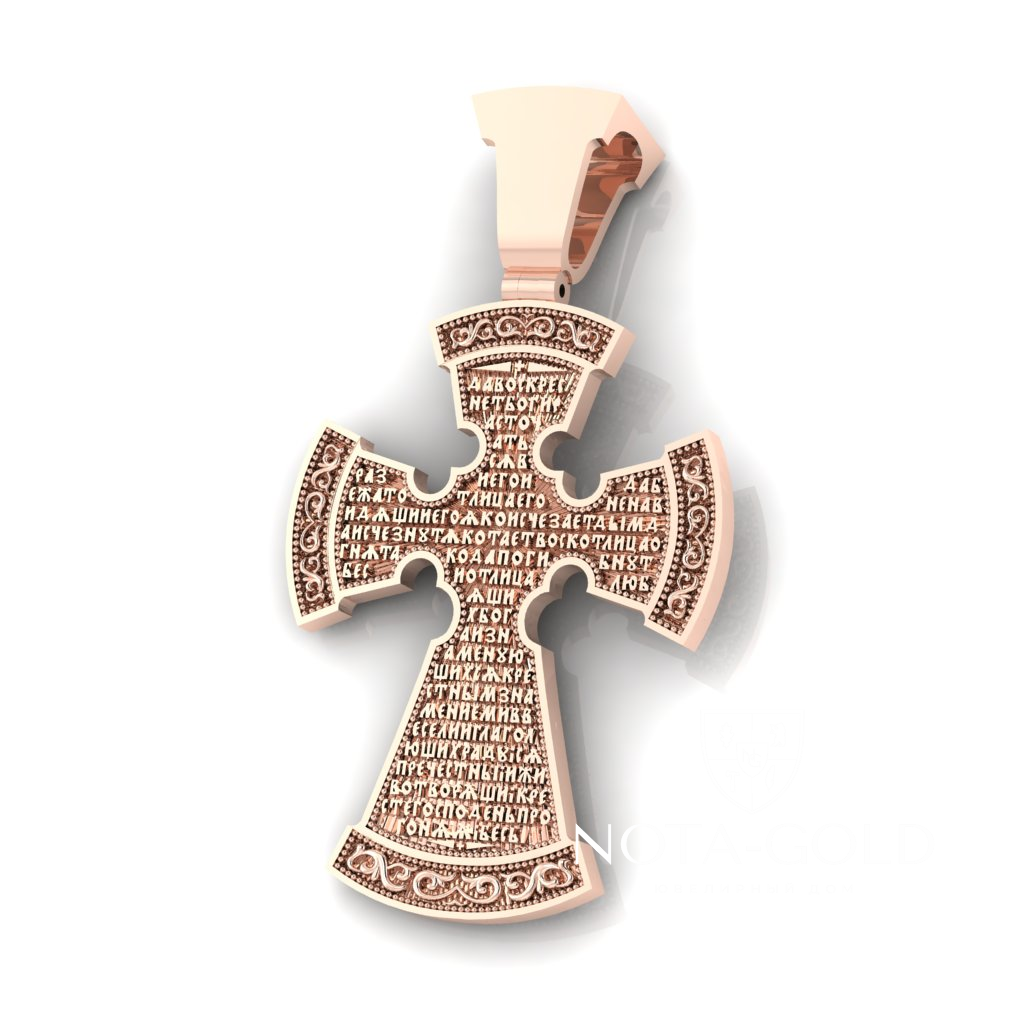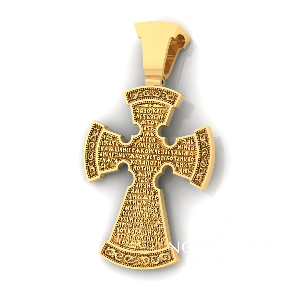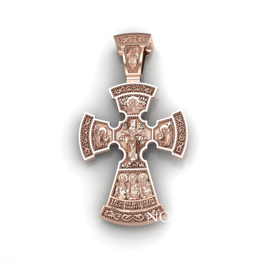Серебряный крест с позолотой и ликами Святых - Господь Вседержитель, Архангелы Гавриил и Михаил, Иисус Христос, Архиепископы Василий Великий, Иван(Иоанн) Златоуст, Григорий Богослов, Ангел Серафим с молитвой на обороте Богу единому и Кресту животворящему (Вес: 17 гр.)