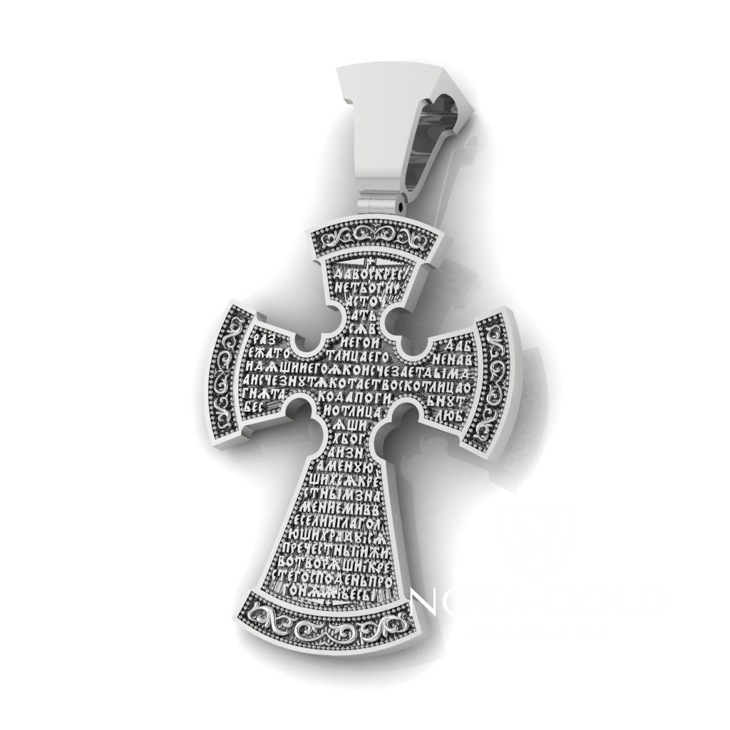 Серебряный крест с позолотой и ликами Святых - Господь Вседержитель, Архангелы Гавриил и Михаил, Иисус Христос, Архиепископы Василий Великий, Иван(Иоанн) Златоуст, Григорий Богослов, Ангел Серафим с молитвой на обороте Богу единому и Кресту животворящему