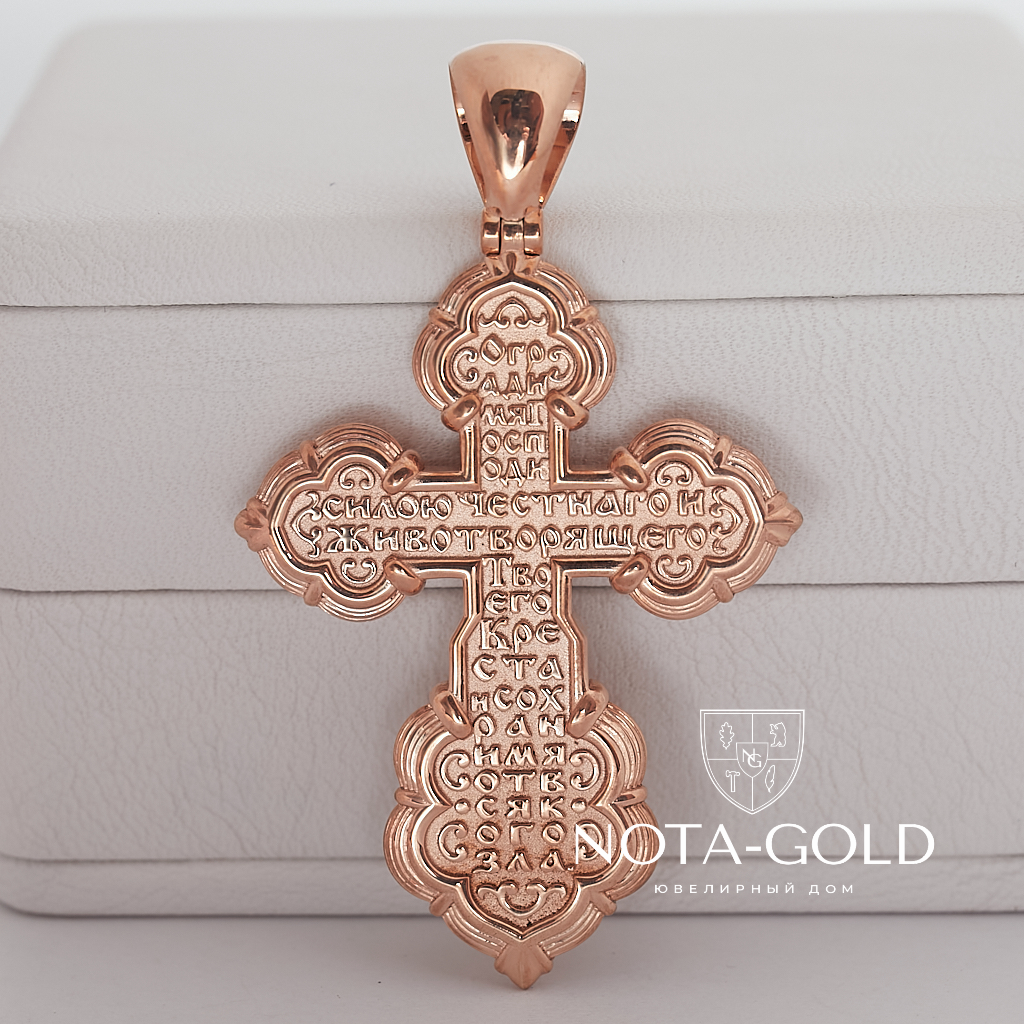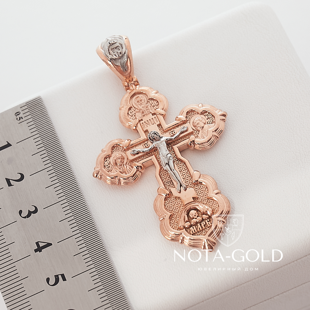 Православный серебряный крест с позолотой, распятием, ликами святых и молитвой Честному и Животворящему Кресту (Вес 13 гр.)